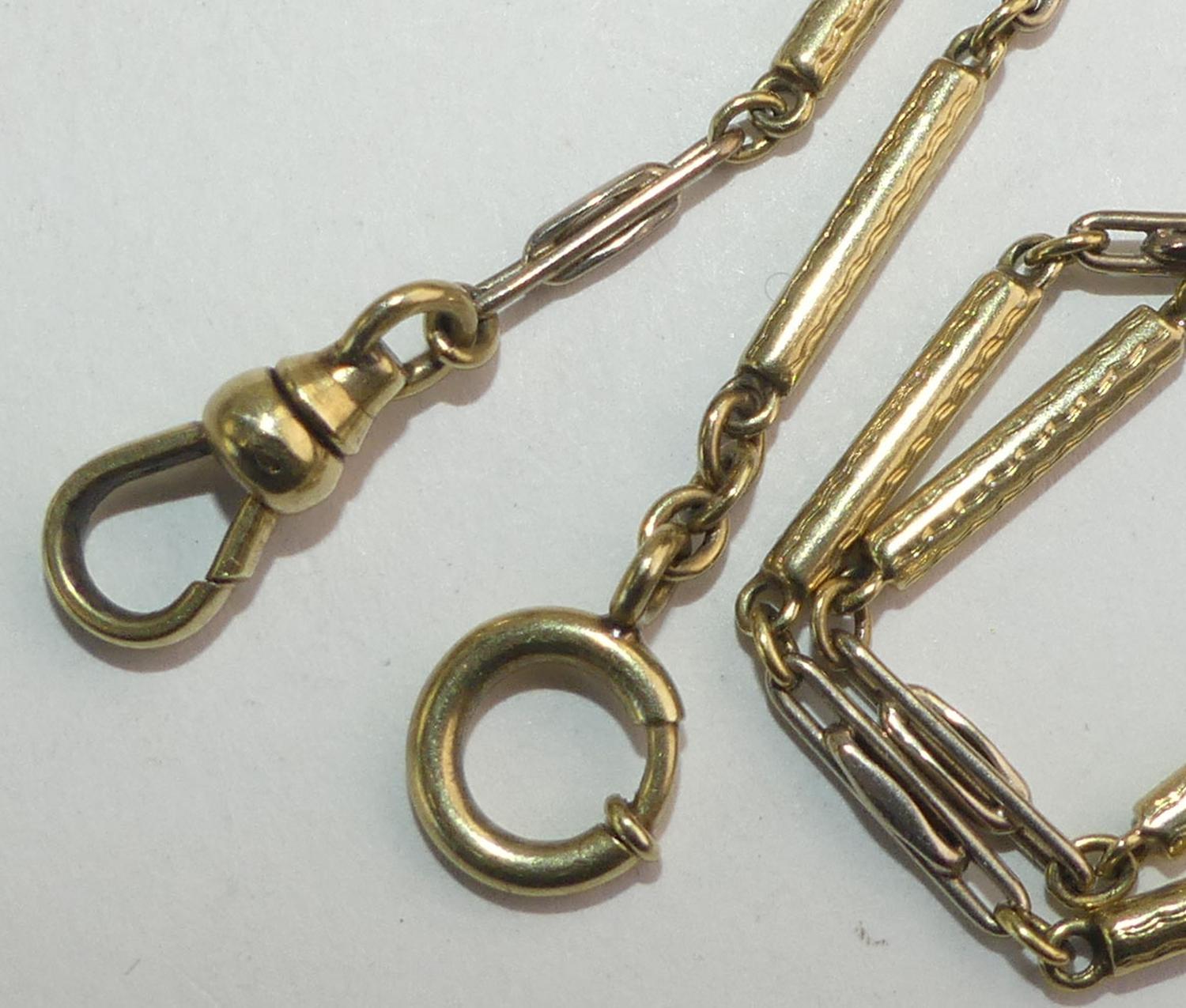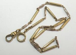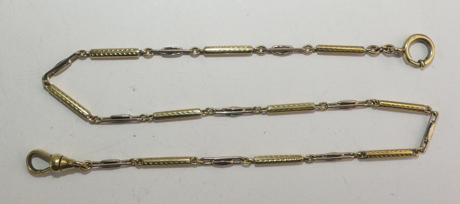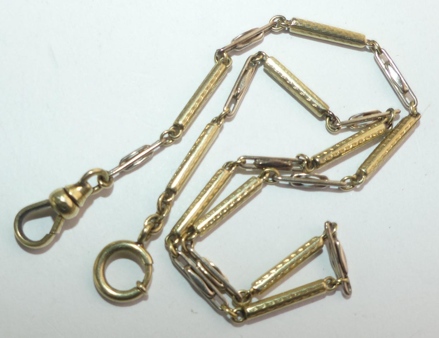 antique 14k yellow and white gold fancy link watch chain, 8.0 grams, 13"