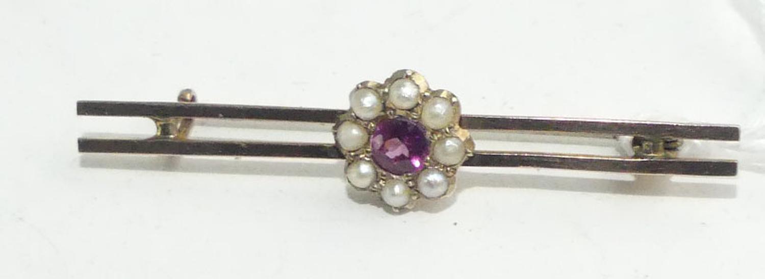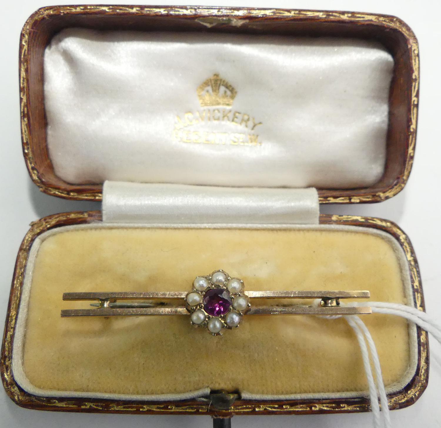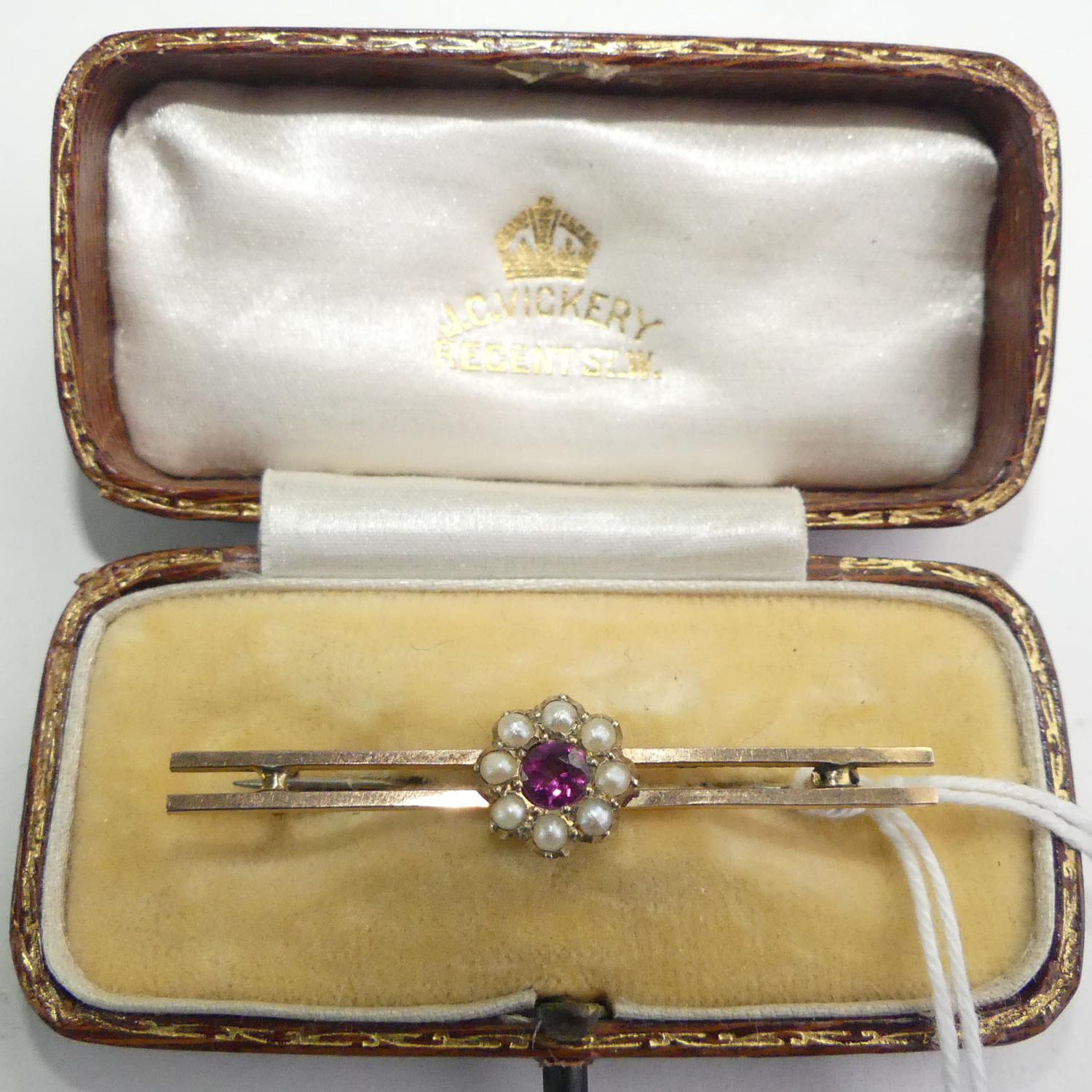 9k pink gold seed pearl bar brooch with fitted case