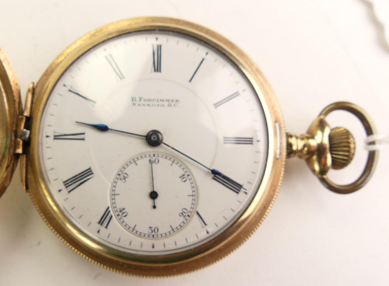 victorian huntercase gold filled b.forcimmer, nanaimo, bc, pocketwatch, #36025 movment