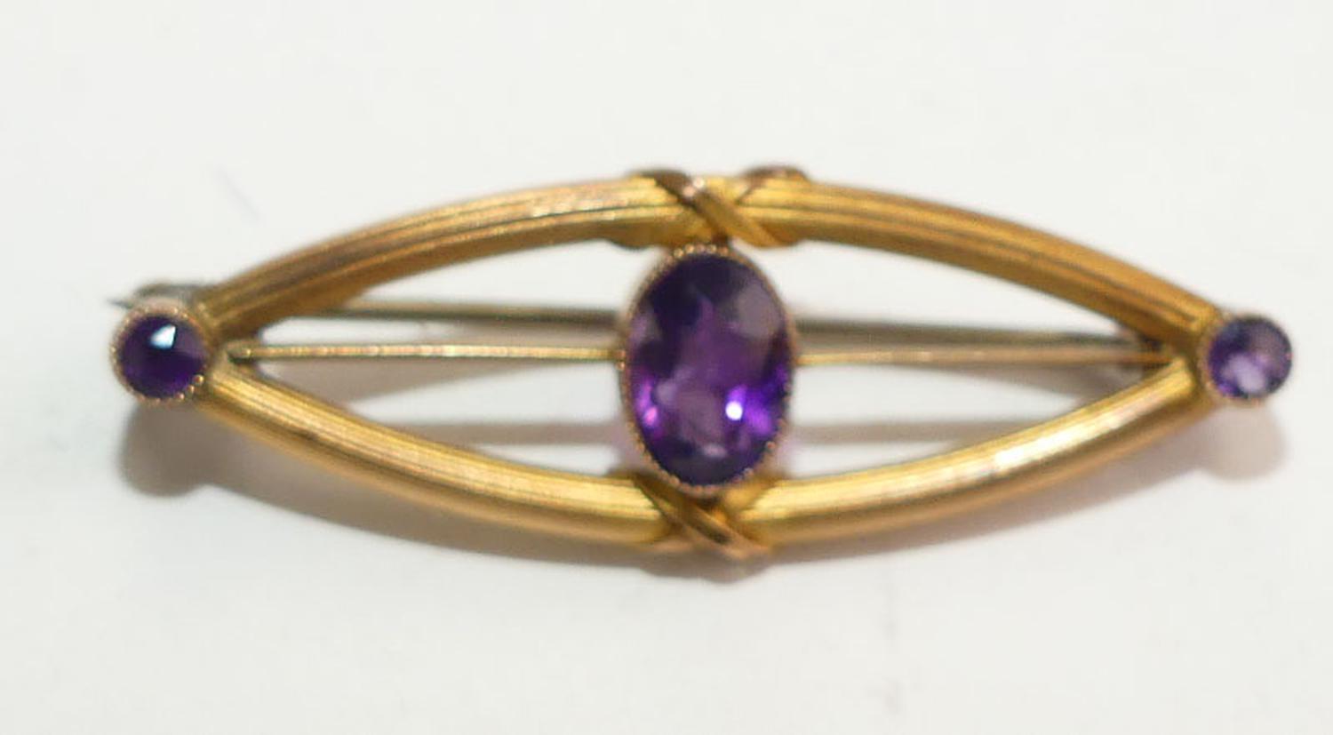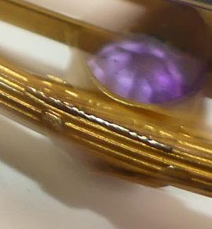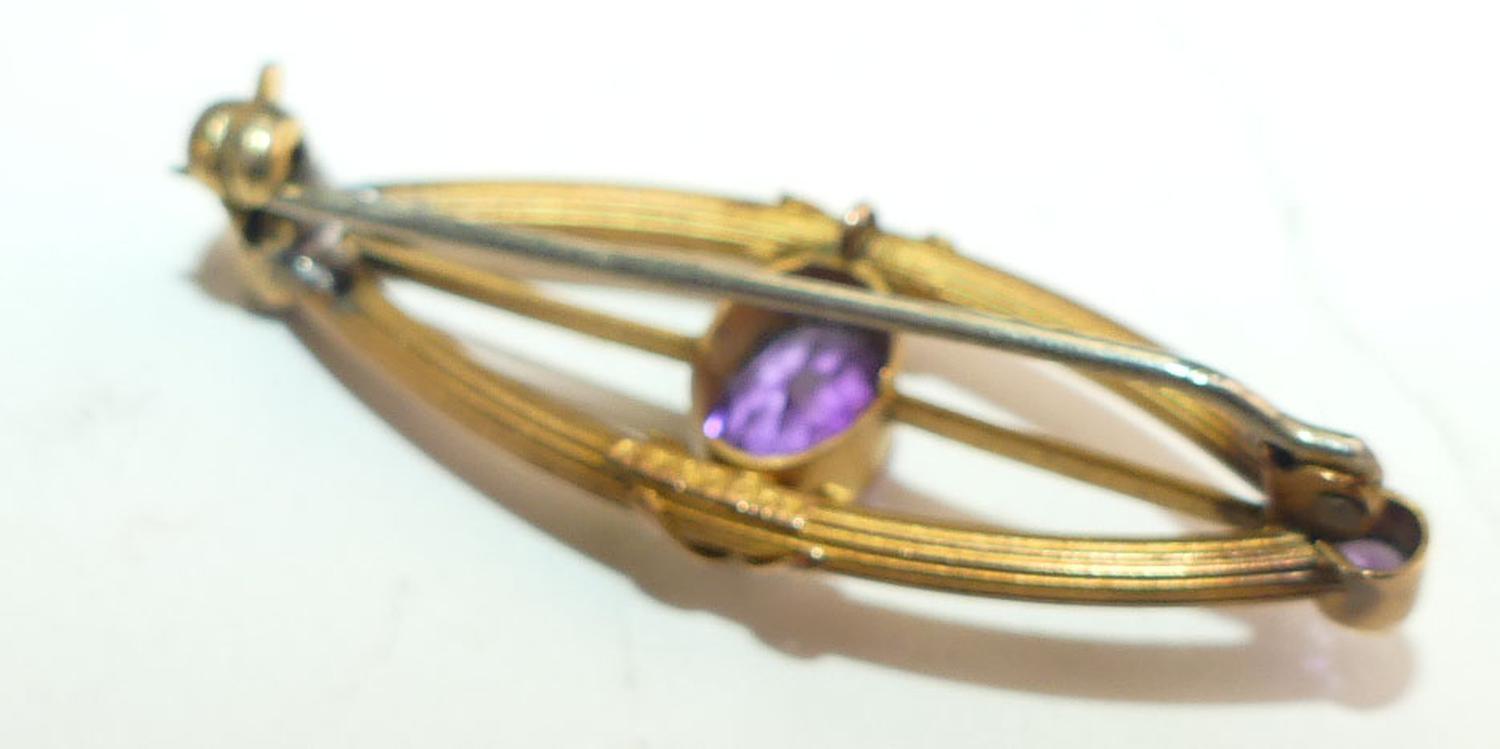 victorian 9k pink gold amethyst brooch, w/a 2.3 grams
