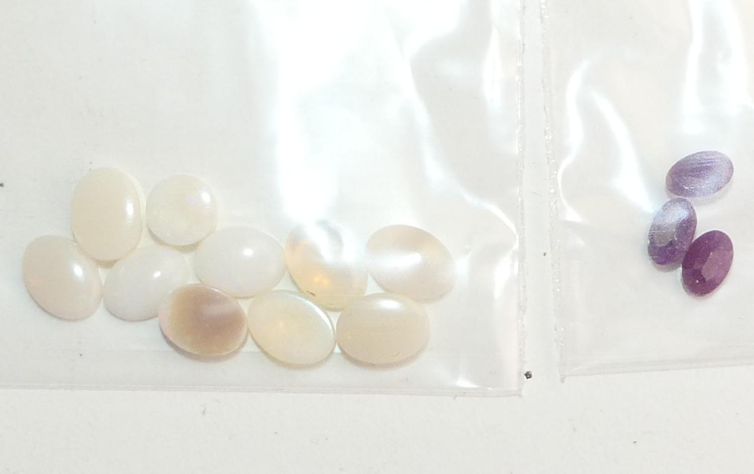 unmounted ruby (3) and oval opal cabachons