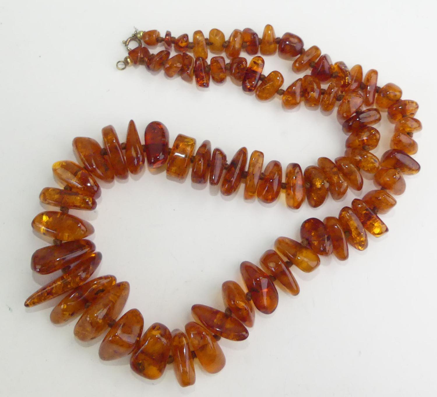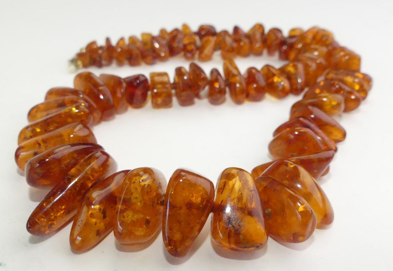 tumbled amber bead necklace, 22"