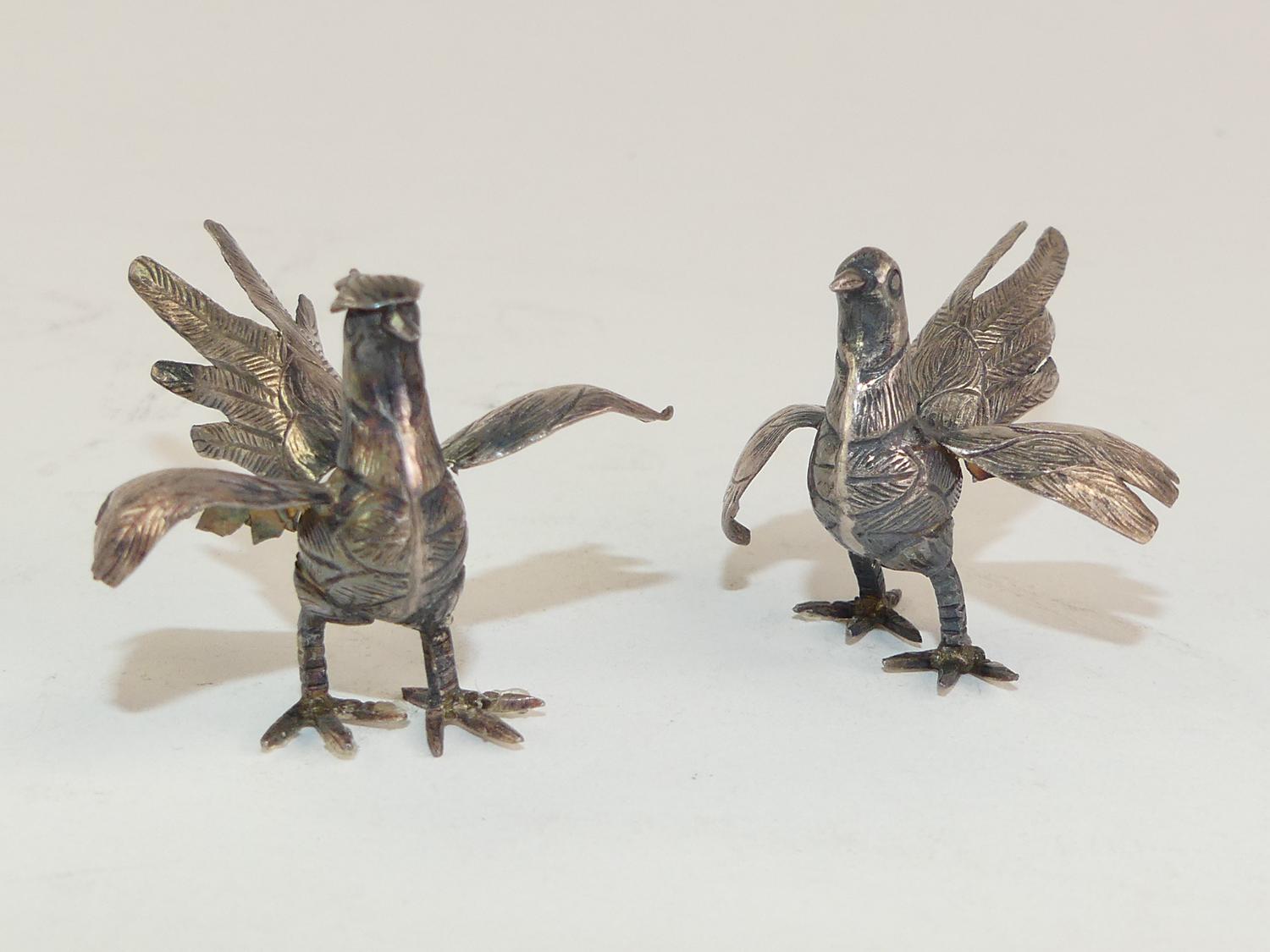 pair of chinese 950 silver fighting cocks, length 2", 16 grams