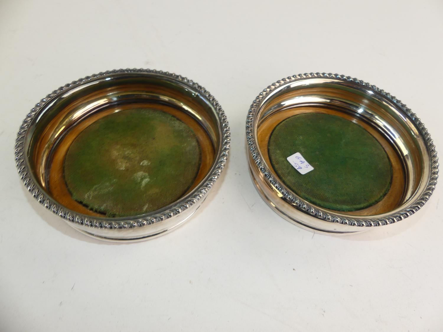 pair of silver plate bottle coasters, dia. 5 3/4"