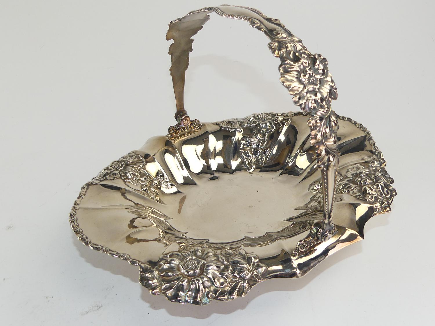 pairpoint silver plate basket, 19" x 12" x 9"