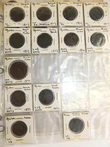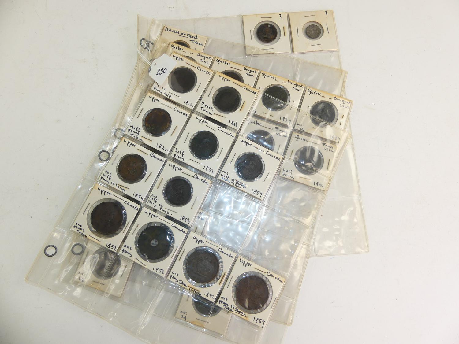 lot of upper canada and quebec tokens and coins, 29 coins in total