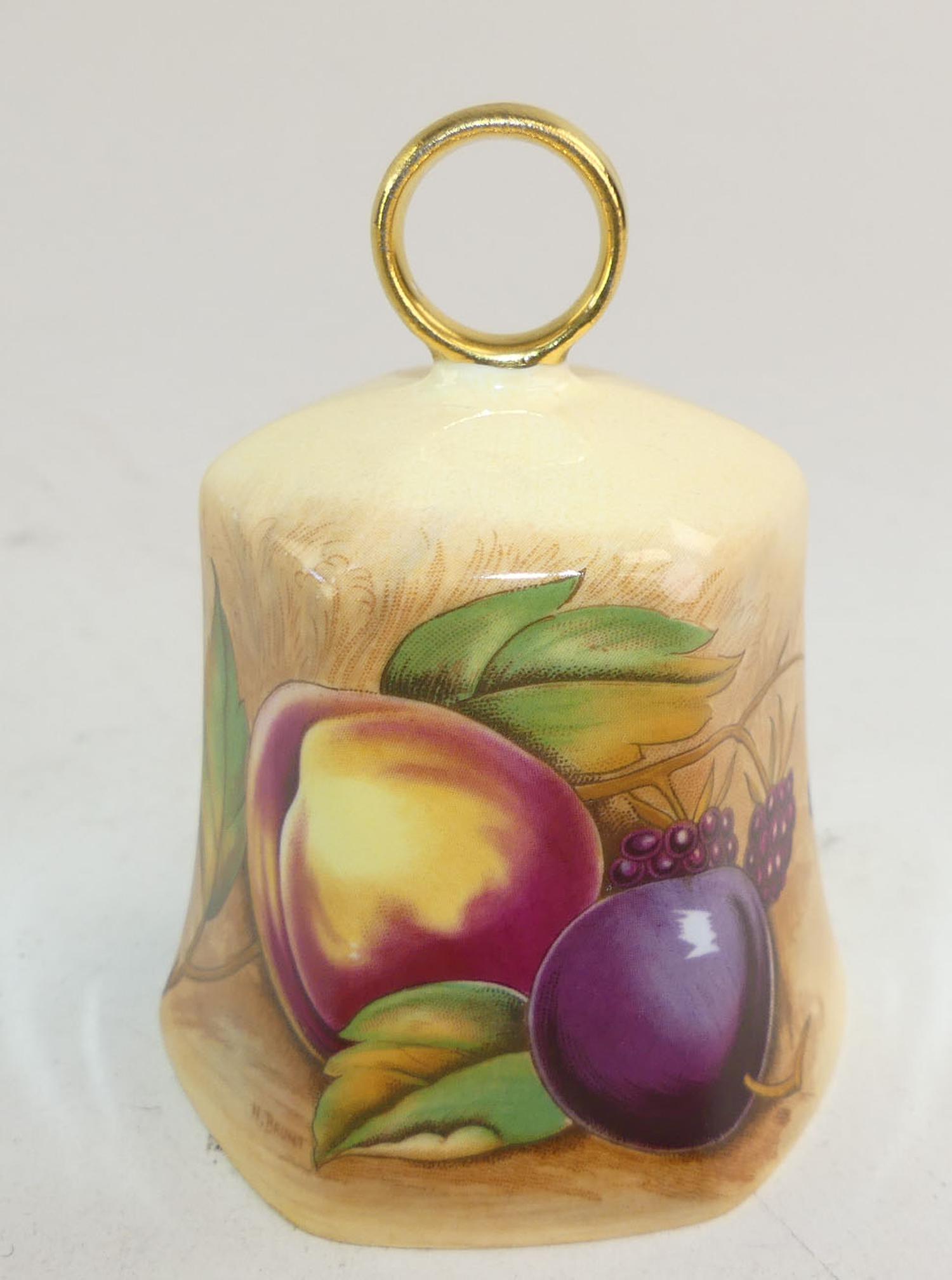 aynsley fruit pattern porcelain bell, ht. 3 1/4"