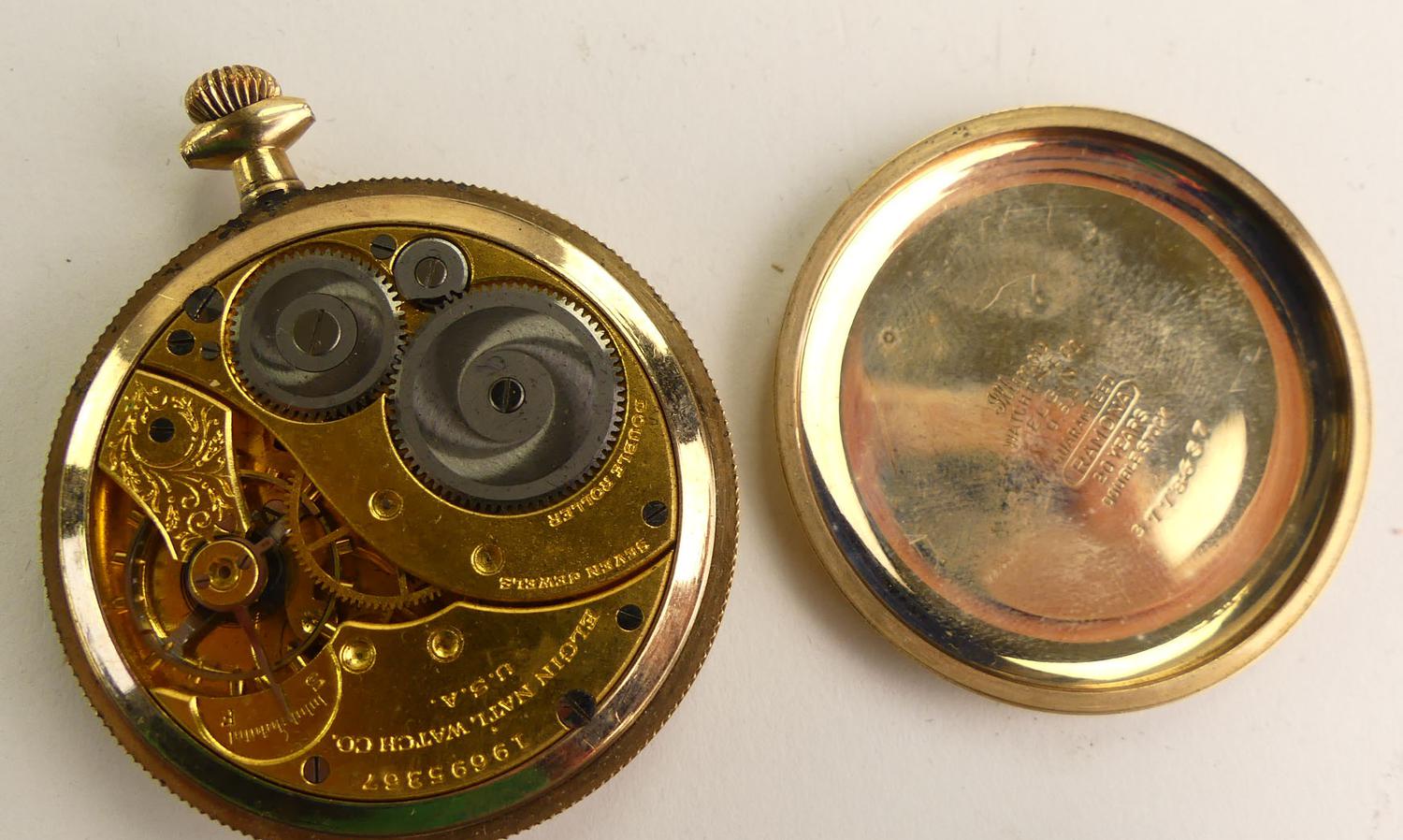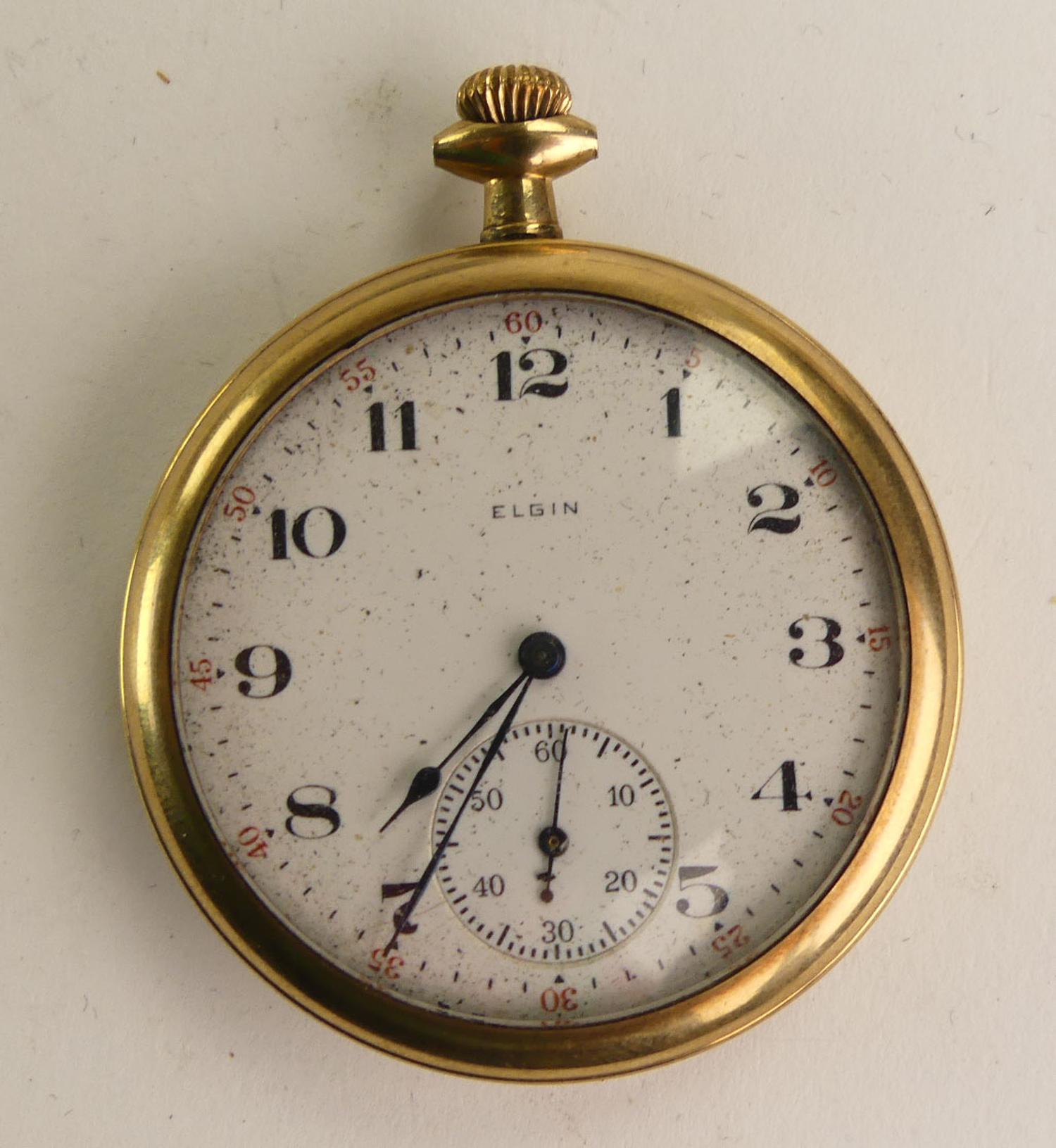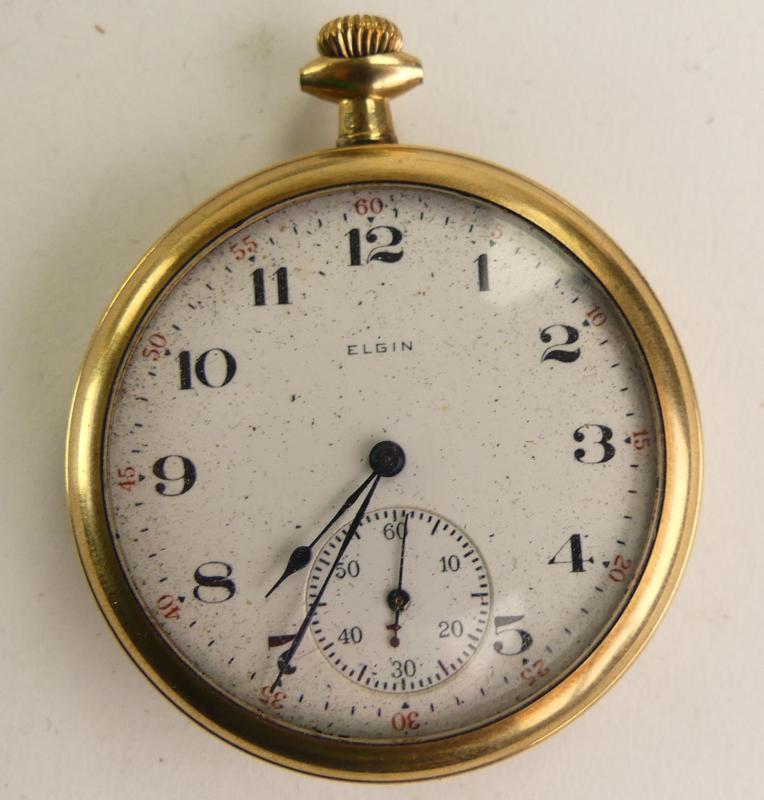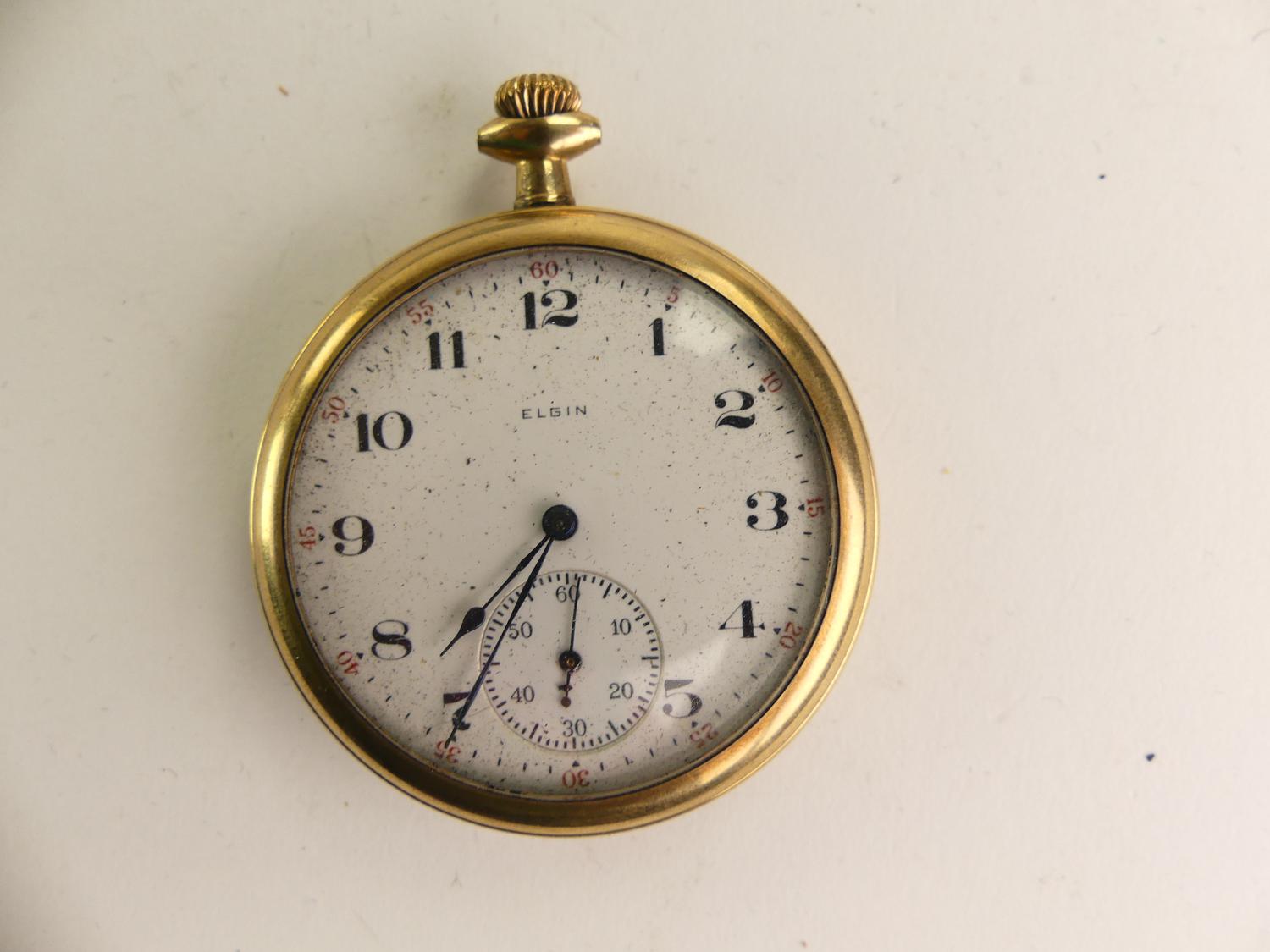elgin openfaced gold filled pocketwatch, 7 jewel, movement #19695367