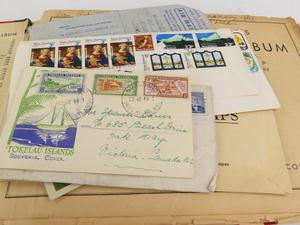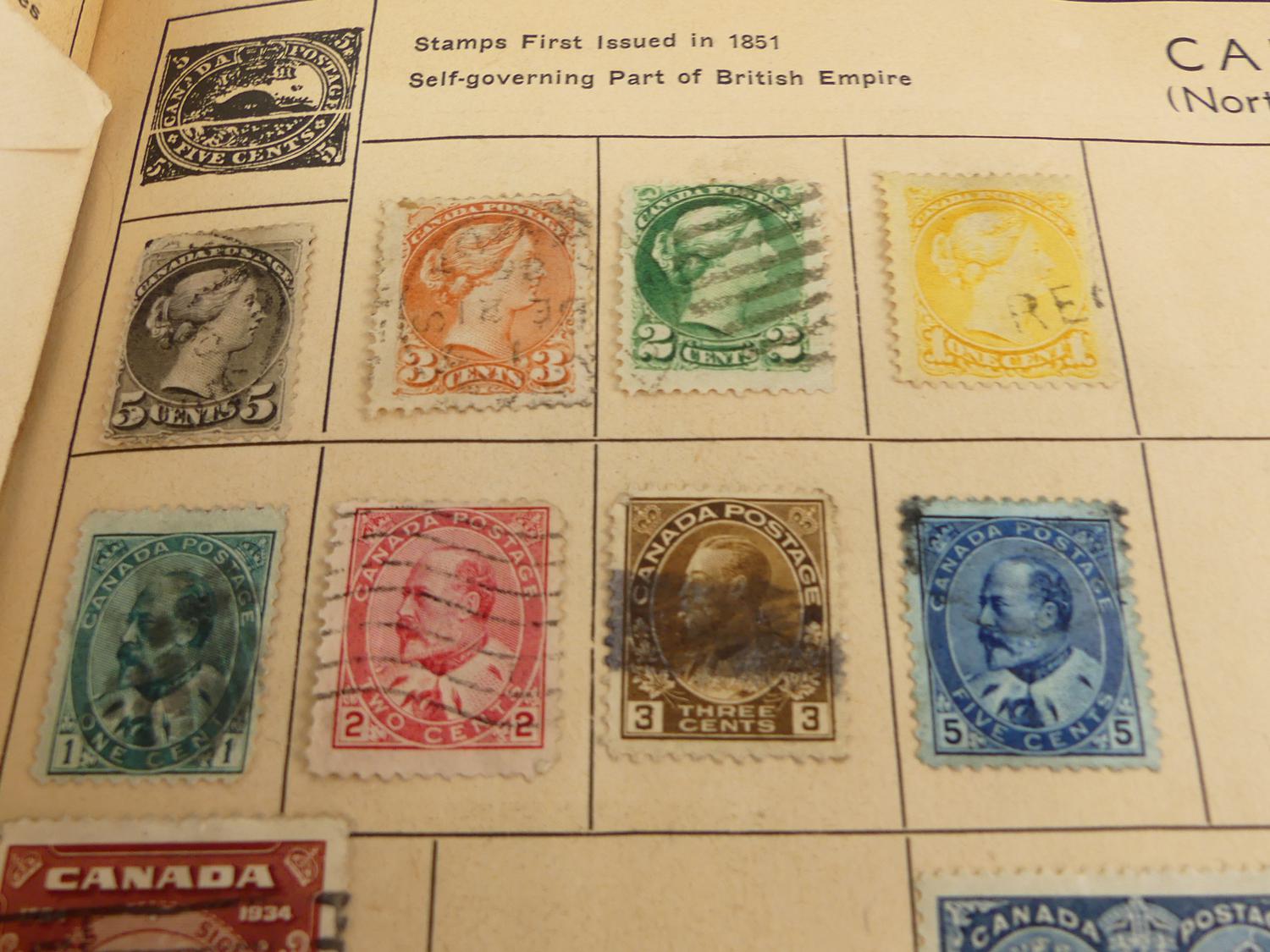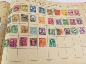 vintage postage stamp album with contents
