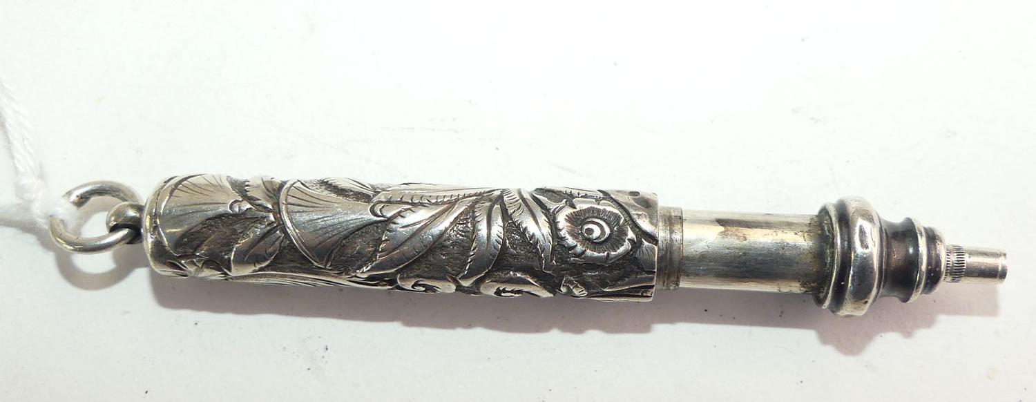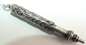 english hallmarked sterling silver chatelaine pencil, length 4 1/2"