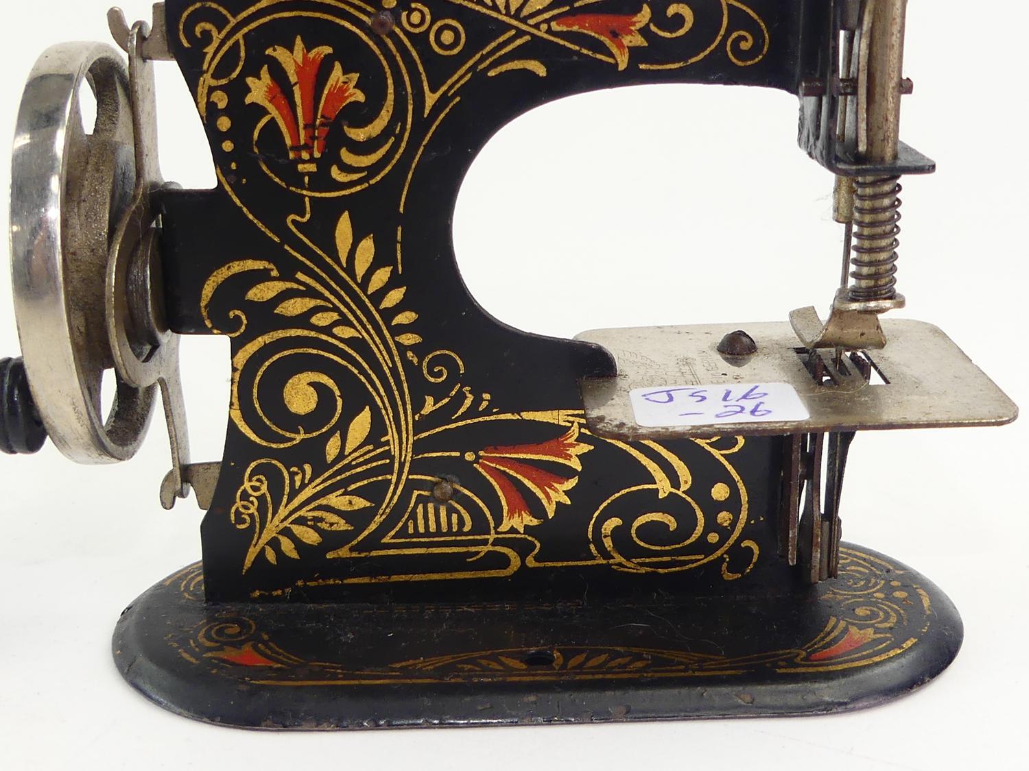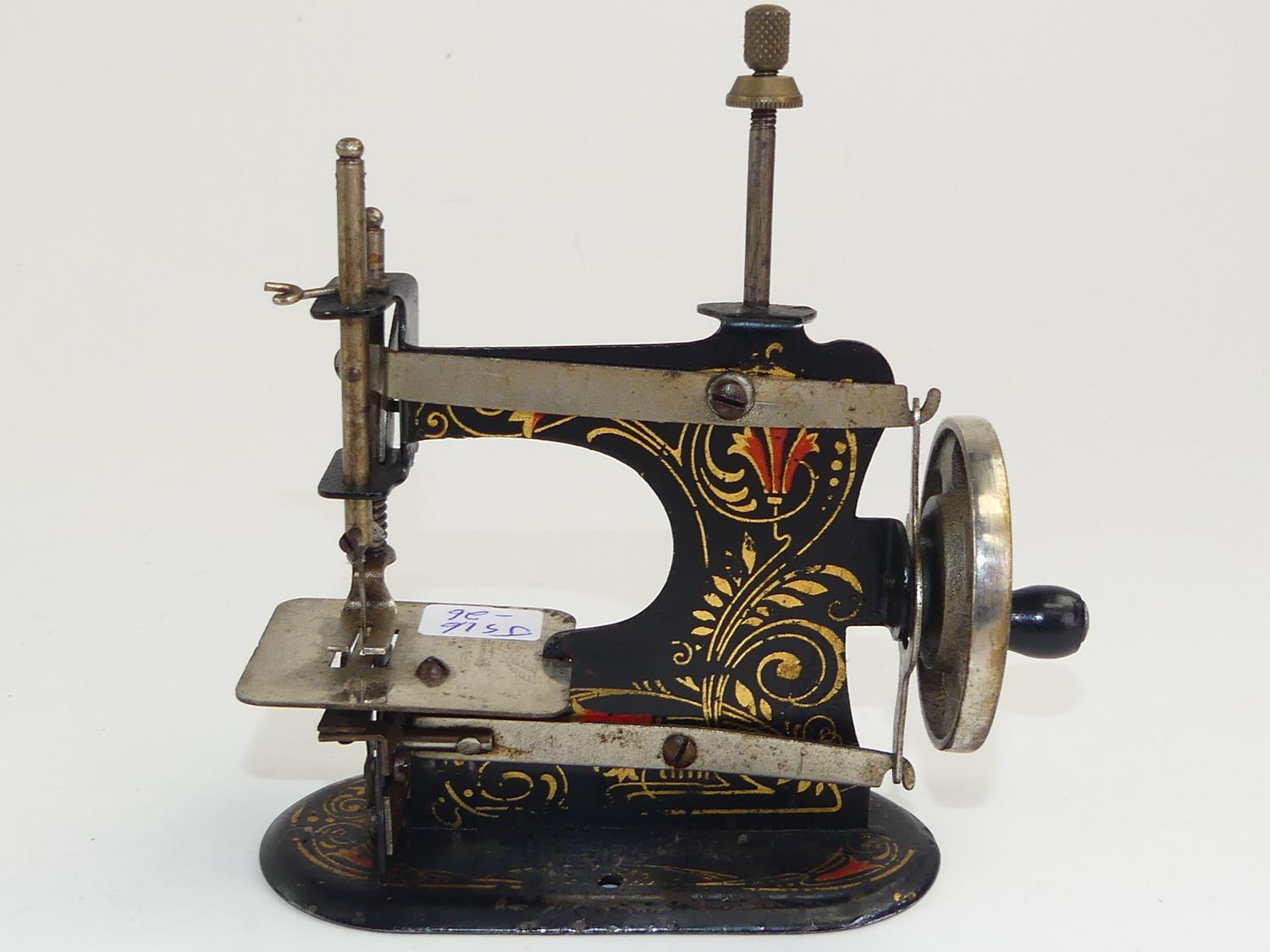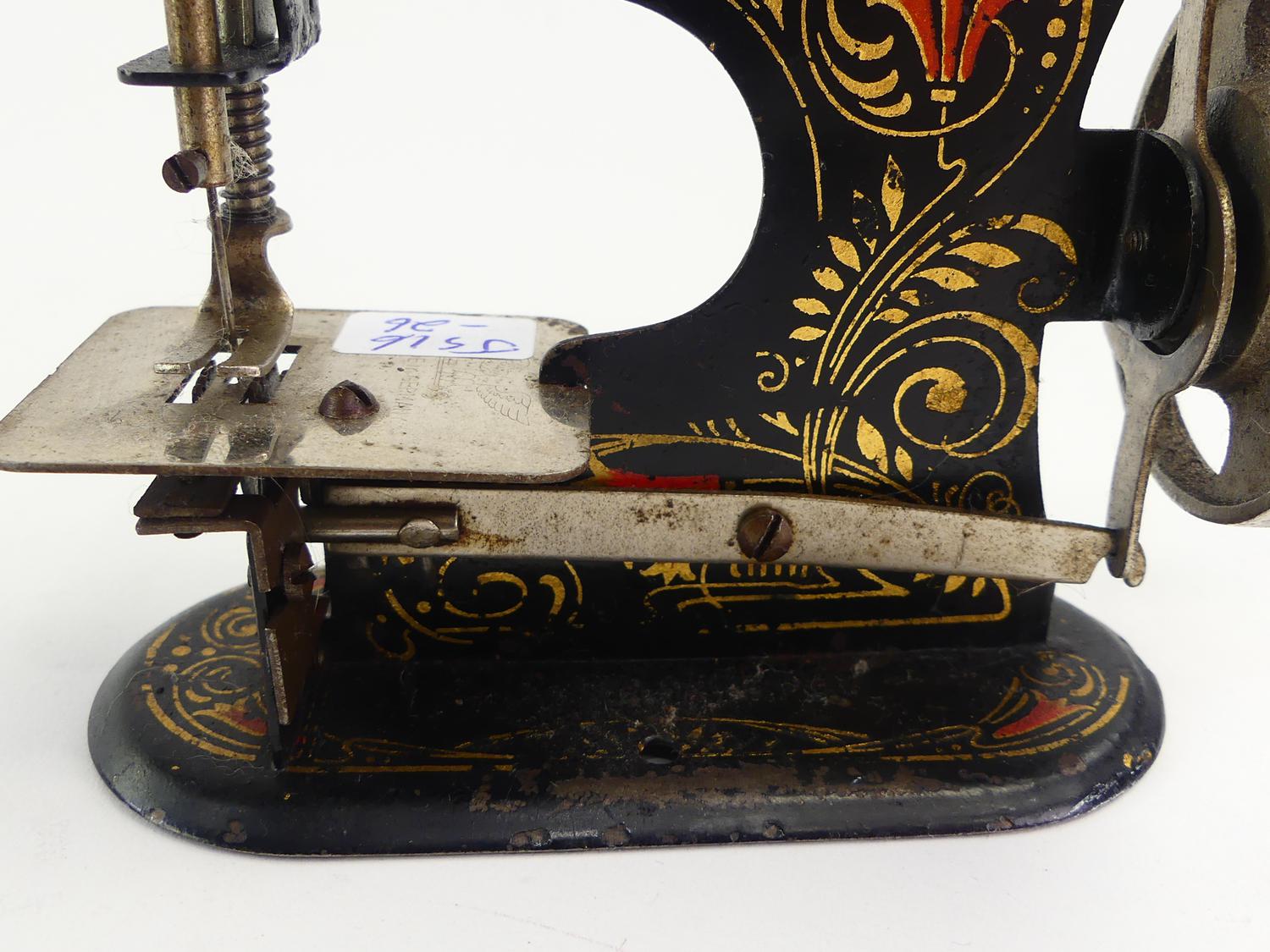 antique german tin toy sewing machine, 5 1/2" x 5 1/2"