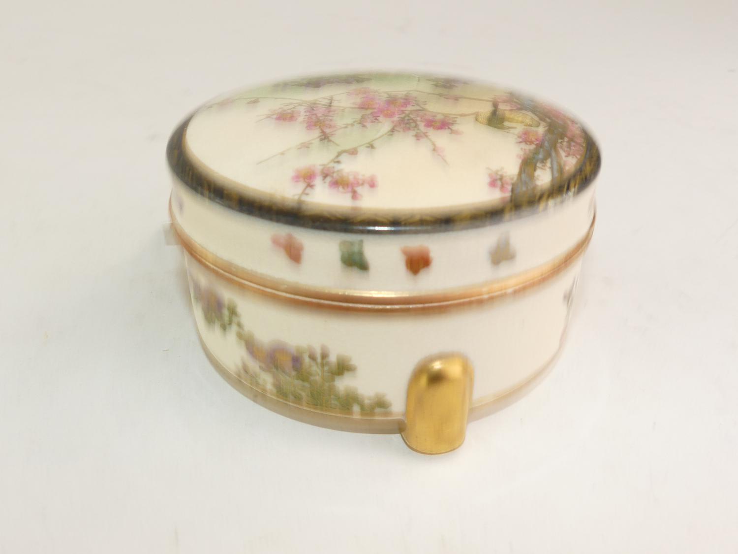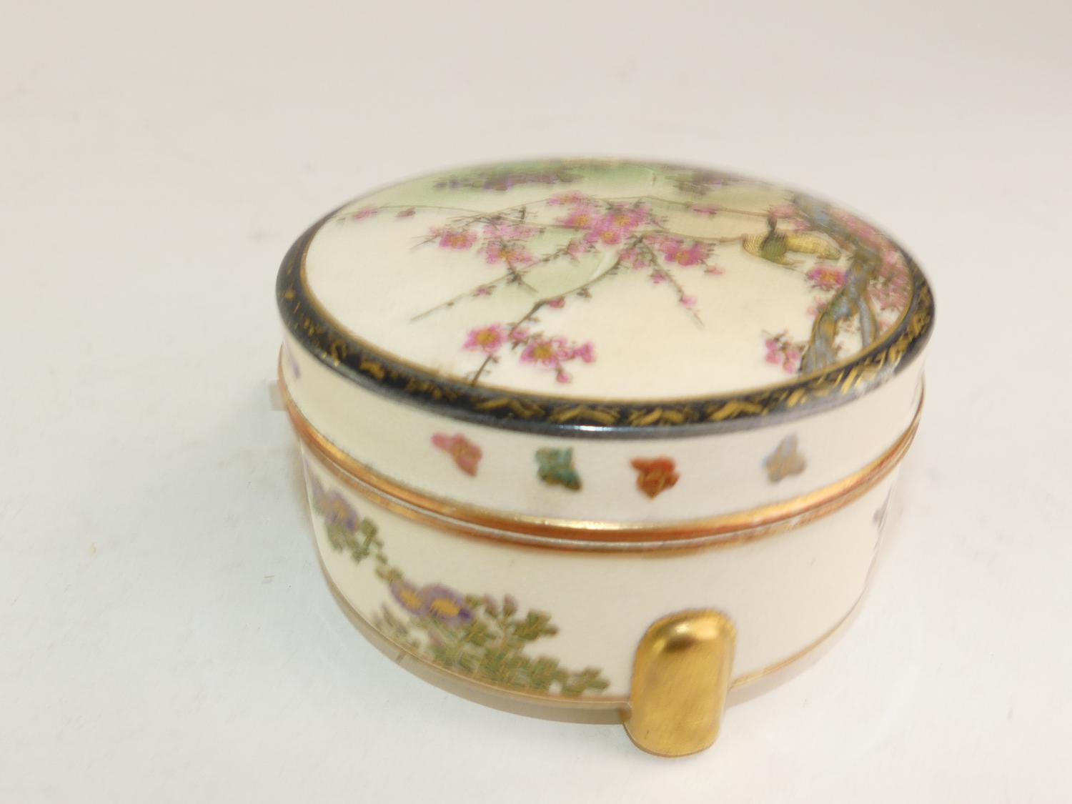 japanese satsuma footed dresser box, 2 1/2" x 4"