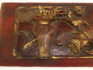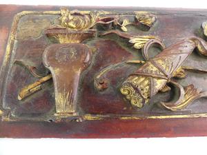 antique chinese lacquered and gilded carved freeze, 14" x 6"