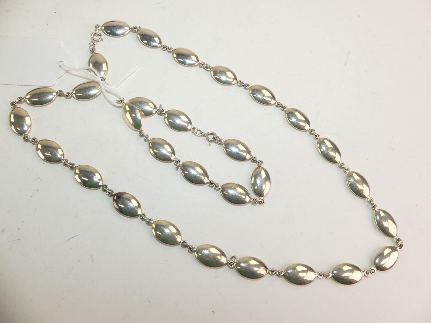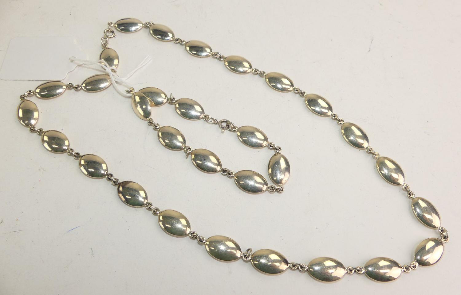 sterling silver modern necklace & bracelet, weighing approx 30grams, 18" and 7 1/2"