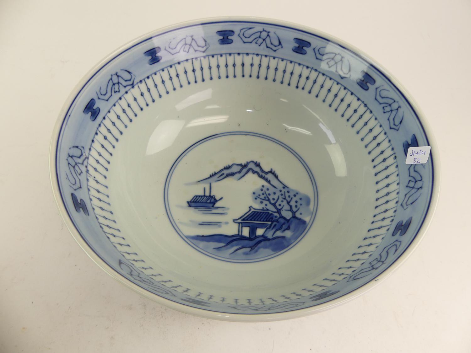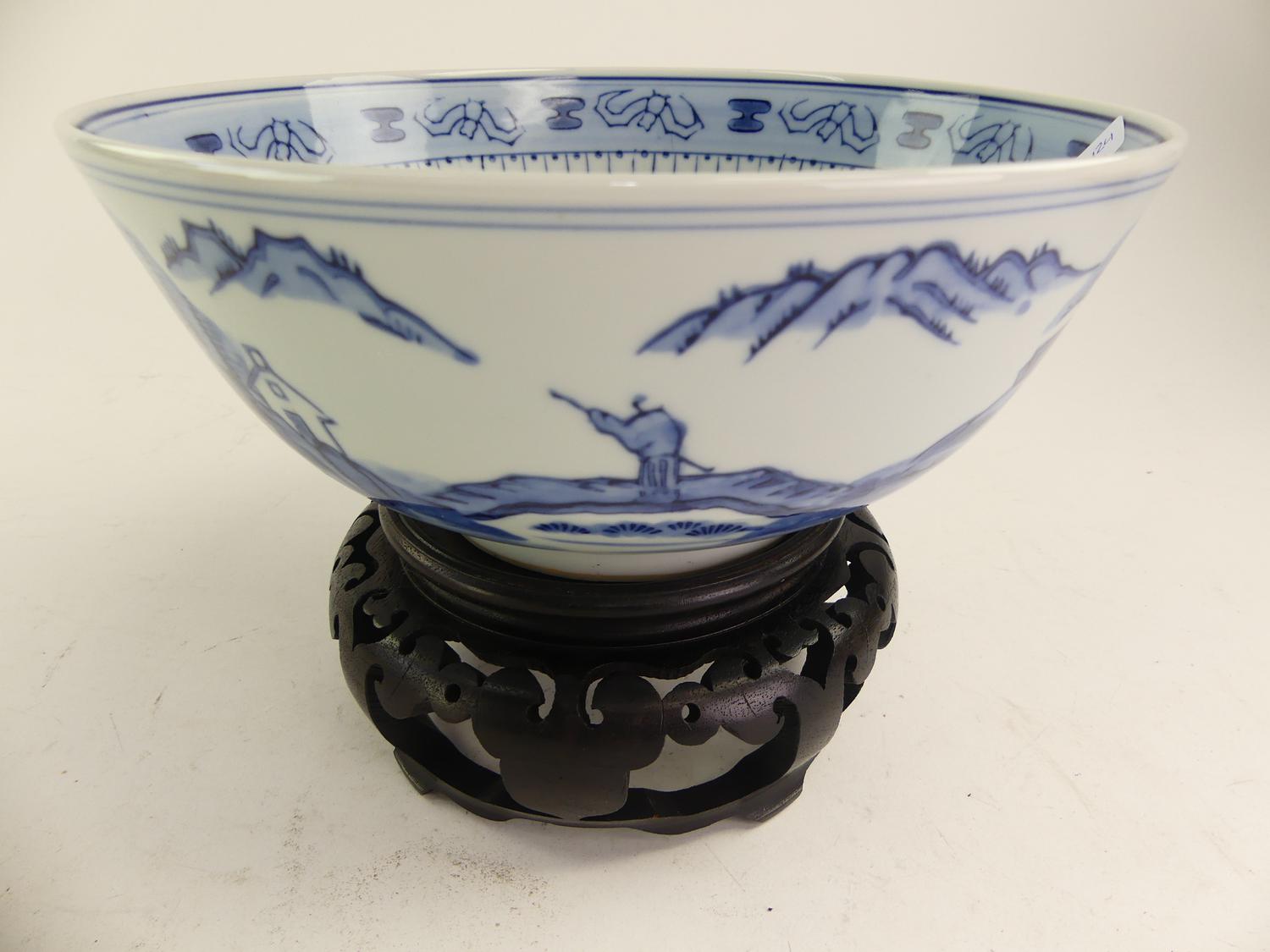 asian blue and white porcelain bowl on stand