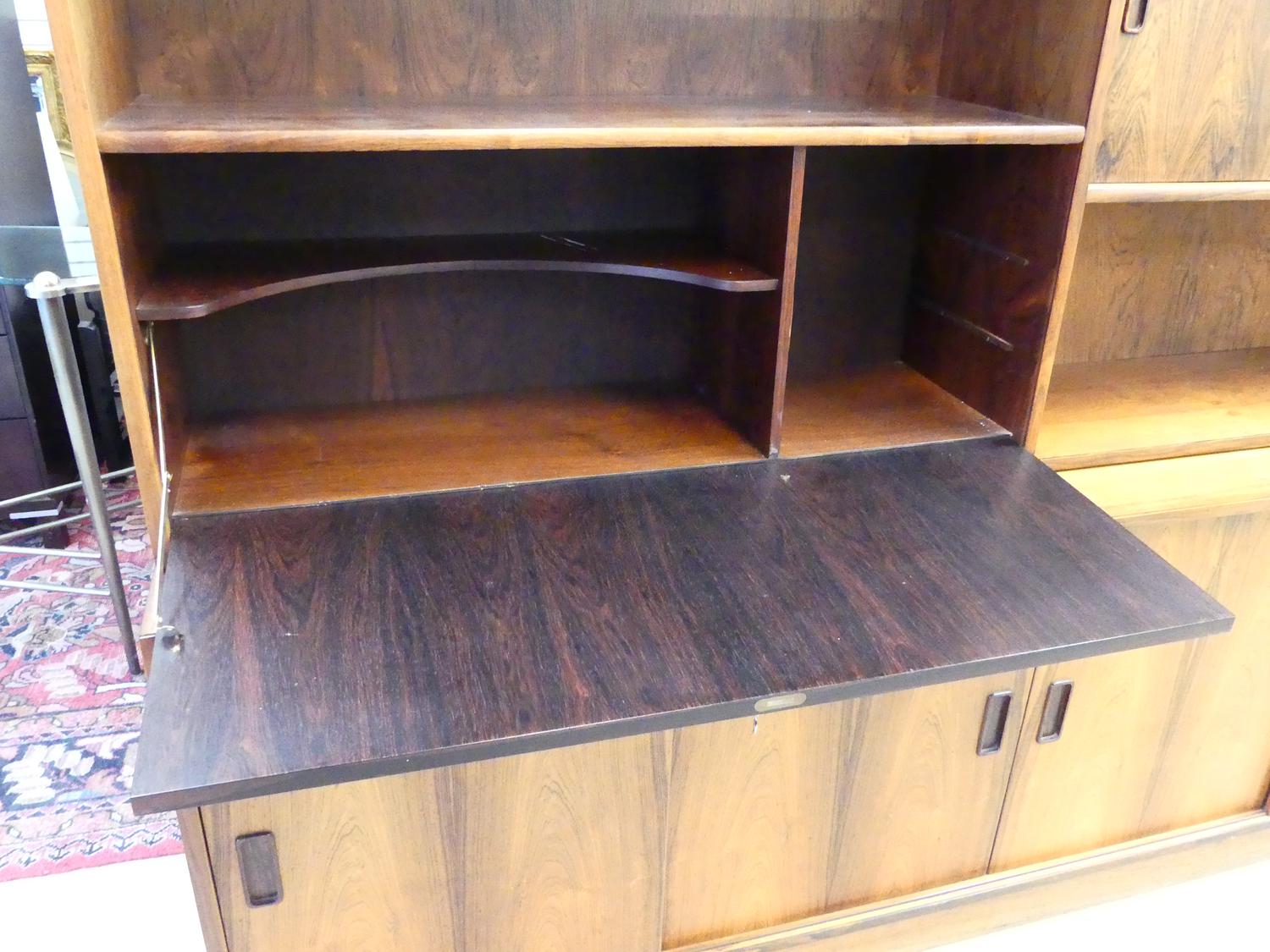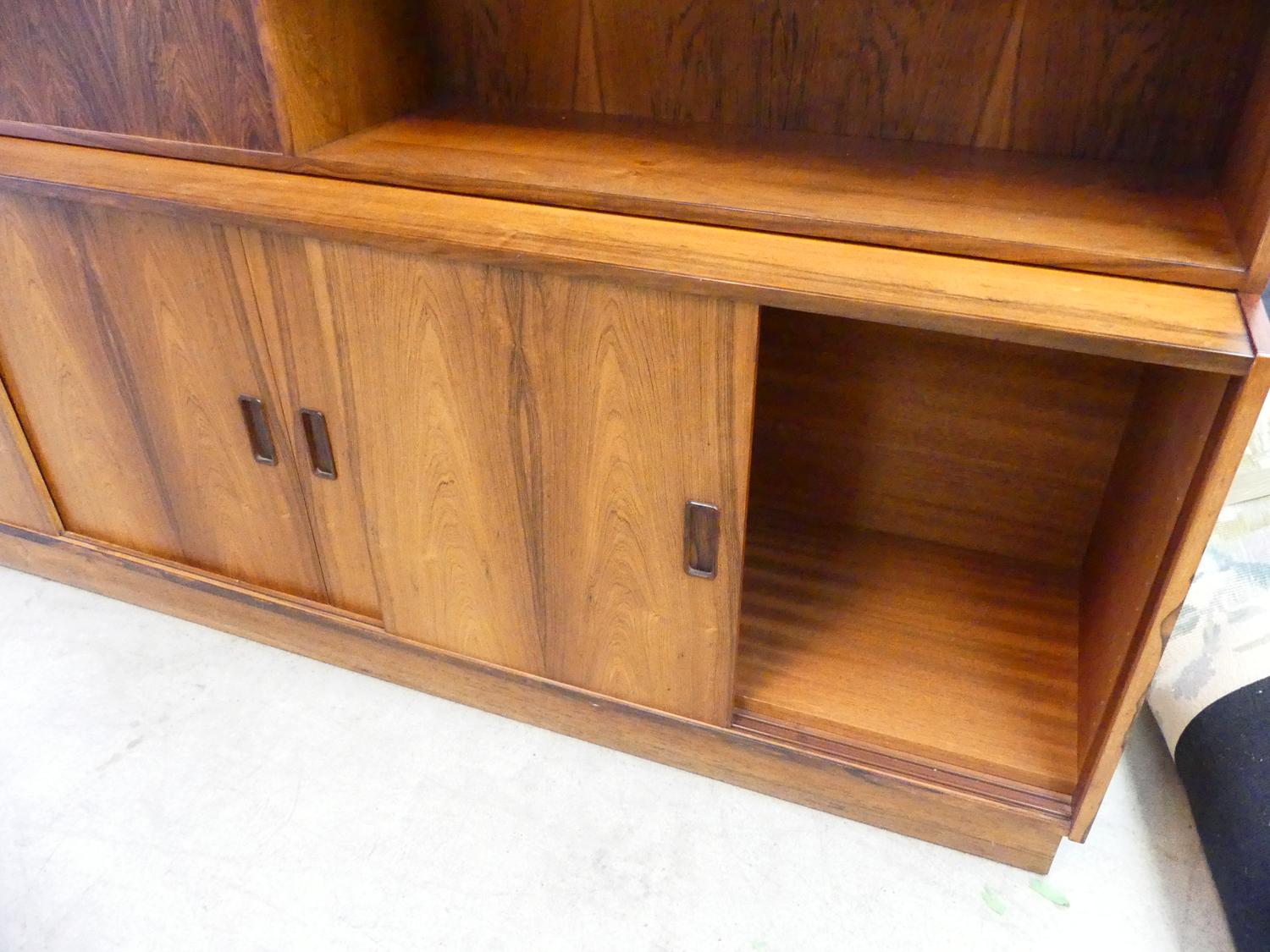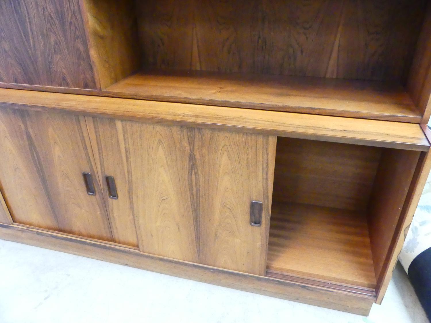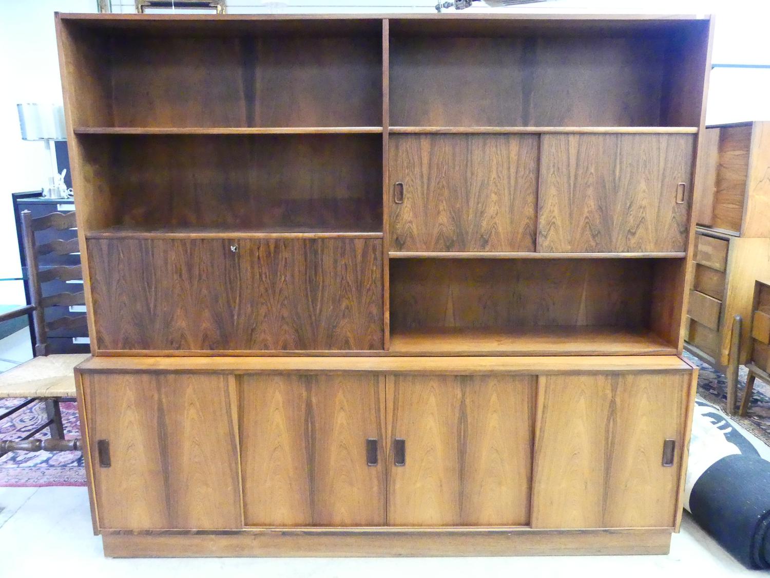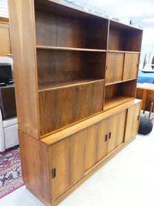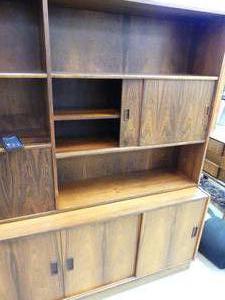mid century danish rosewood side cabinet, 67" x 75" x 16 1/2"