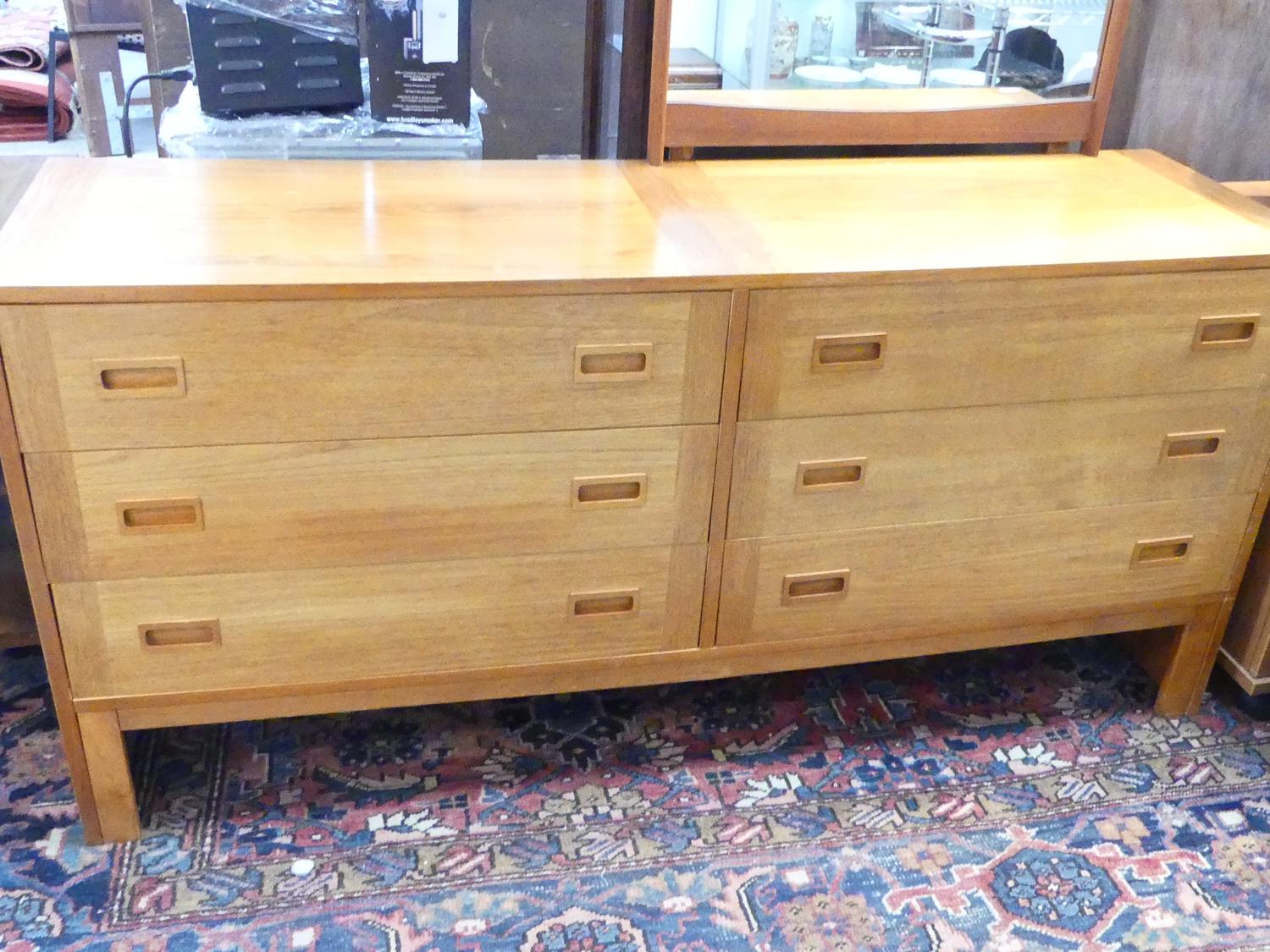 mid century teak dresser, 72" x 81" x 18 1/2"