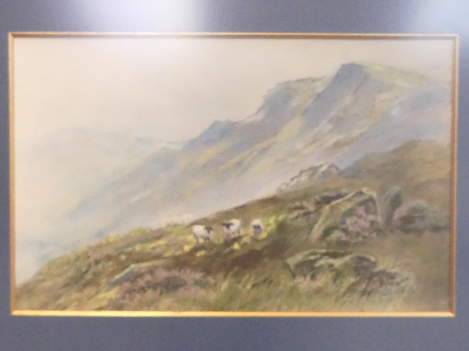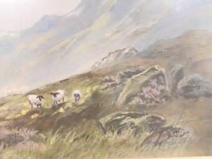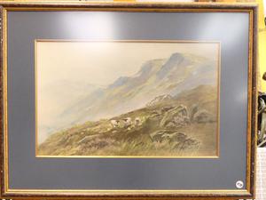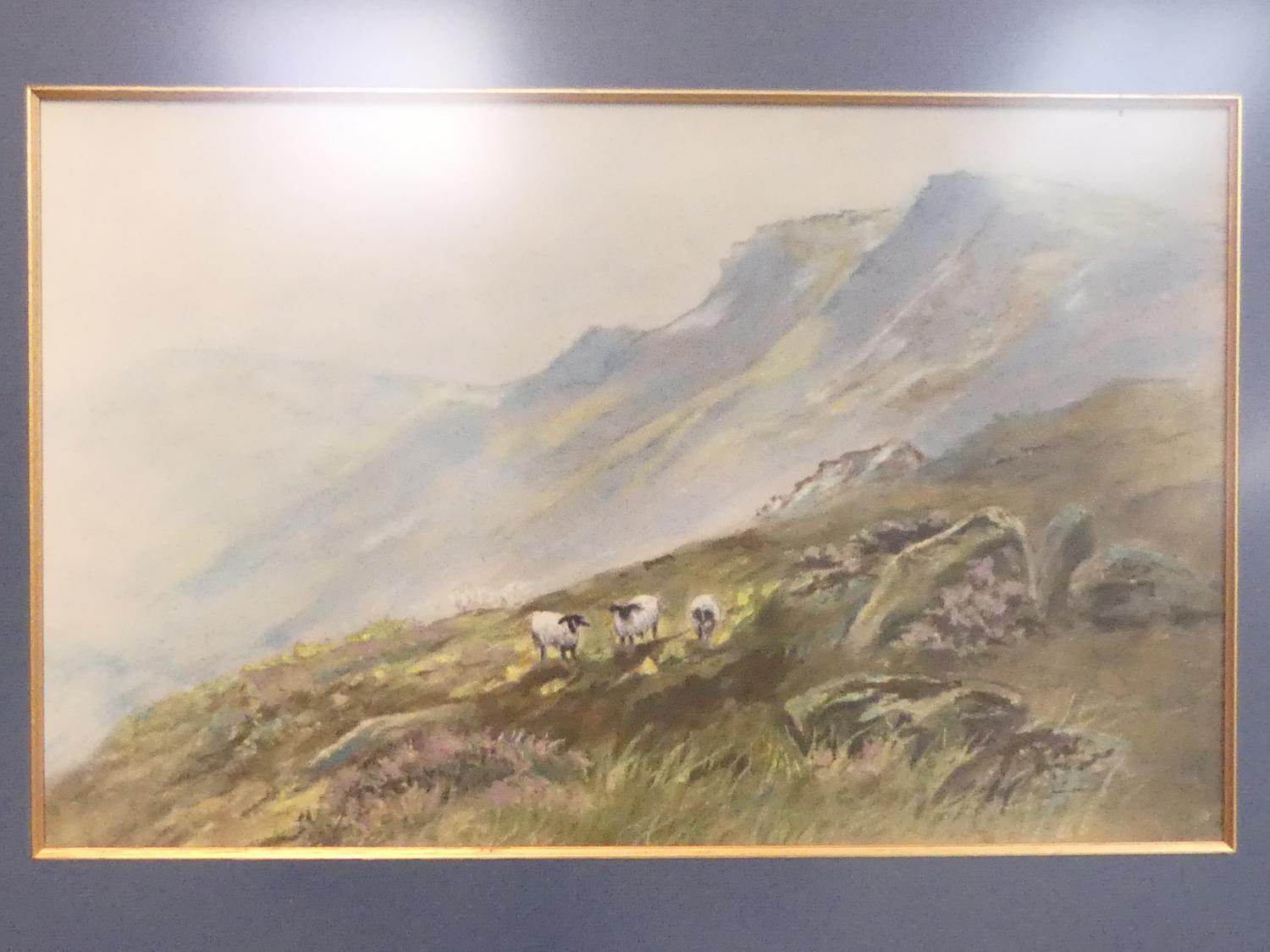 early 20th century scottish school watercolour, 12" x 18", "highland landscape with sheep"