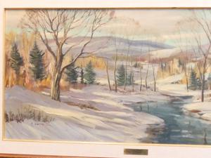 sydney berne (b.1921), oil on canvas, 20" x 40", "winter landscape"