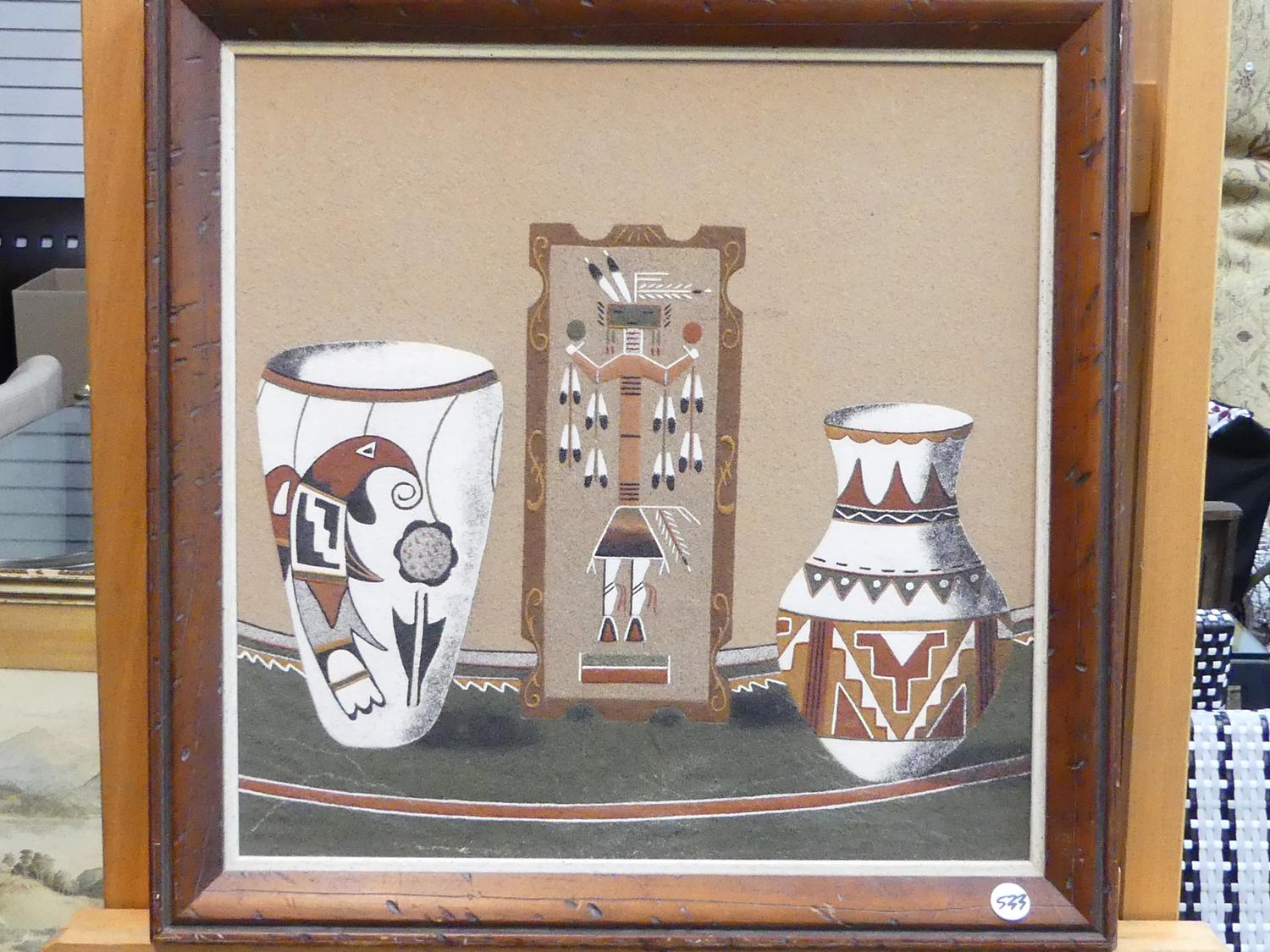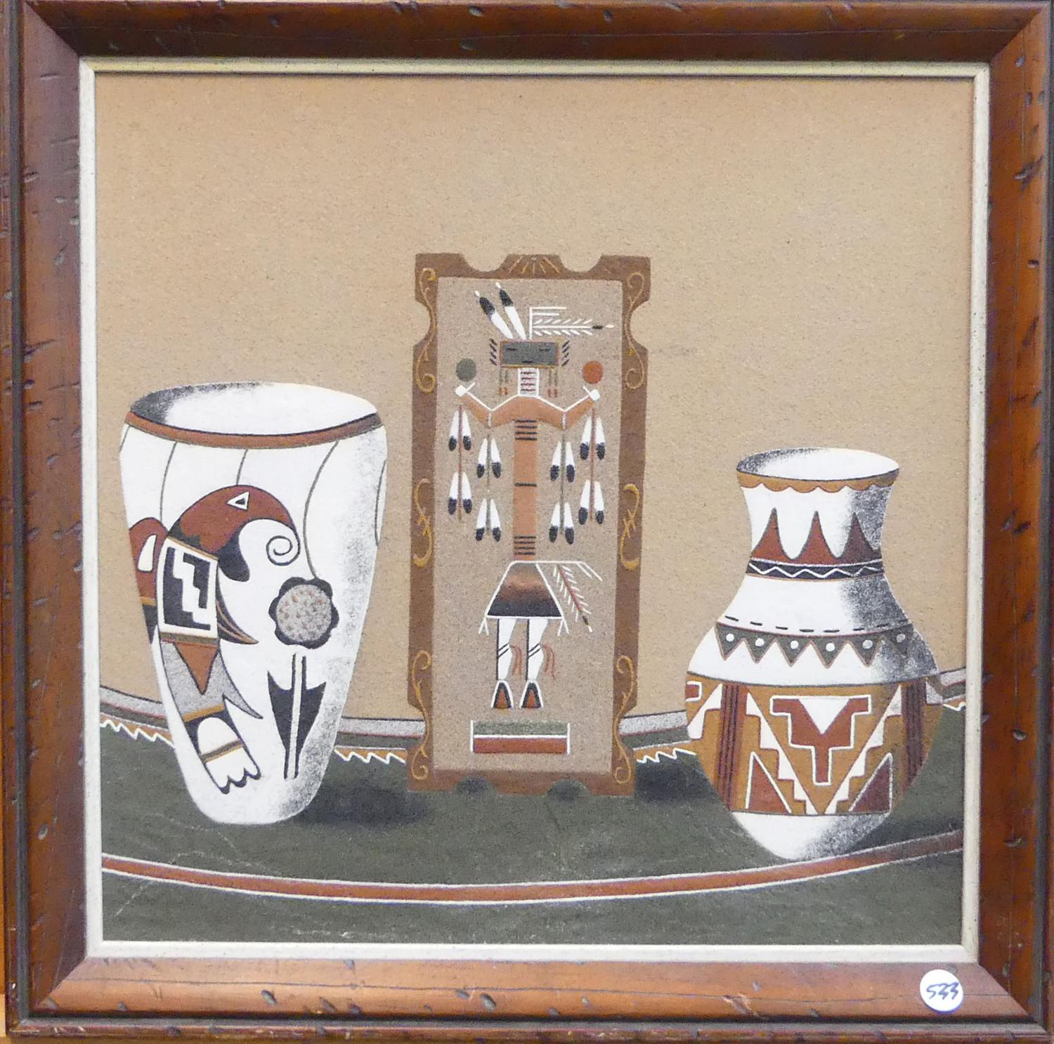 navajo sand painting by sue ben jr., 16" x 16", "lueshill pottery"