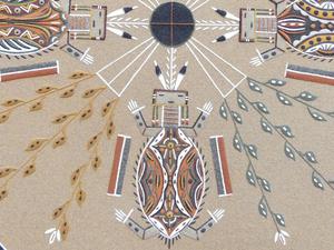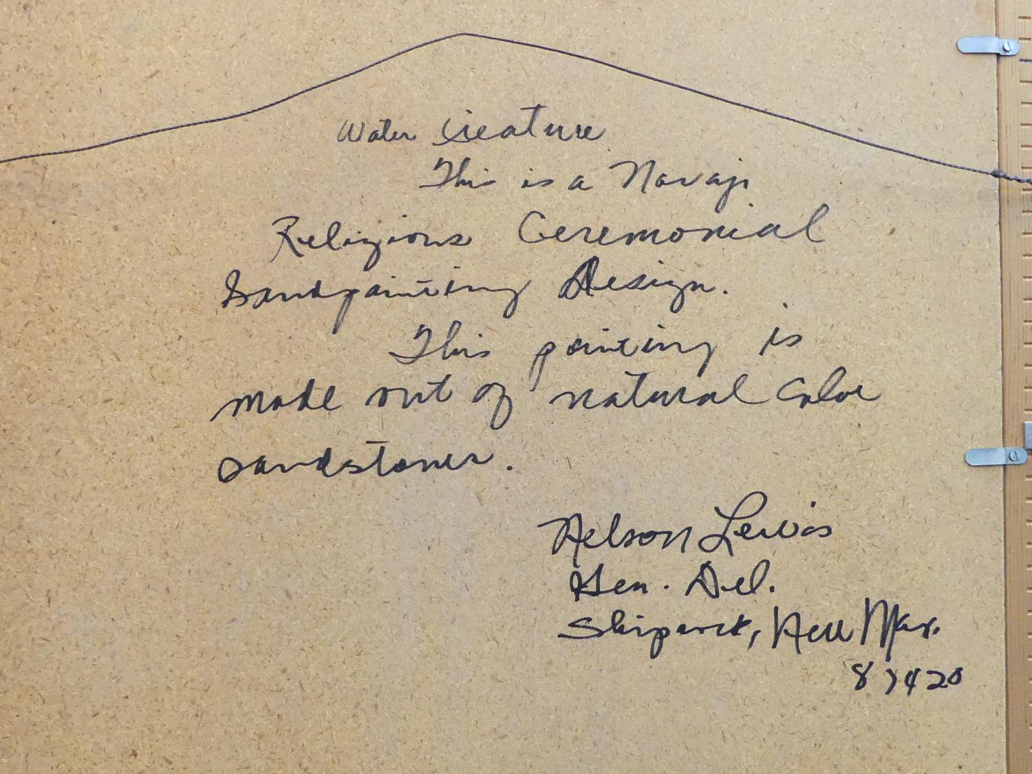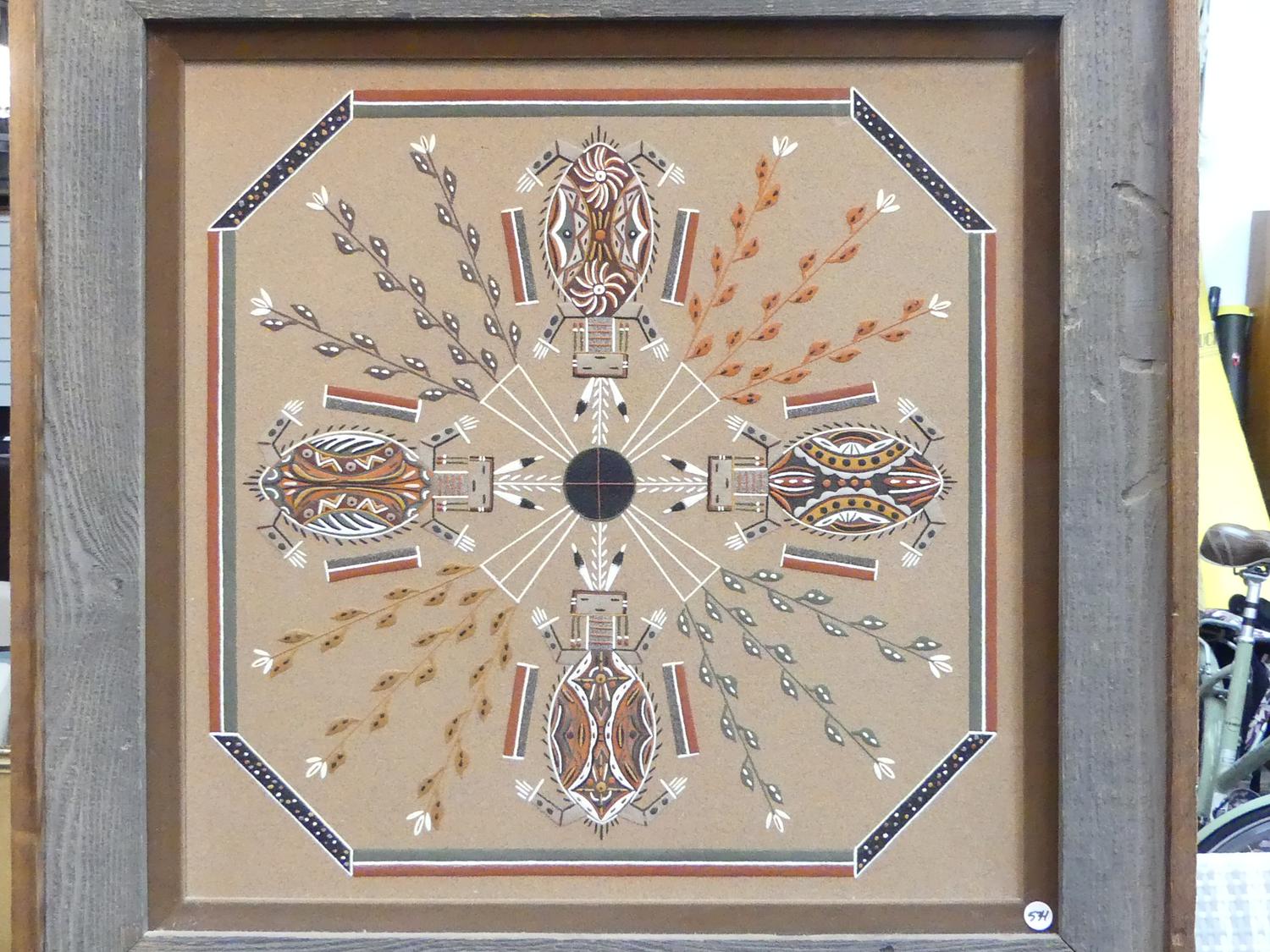 navajo sand painting by nelson lewis, 24" x 24", " water creature"