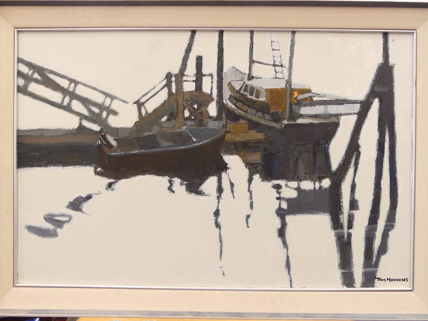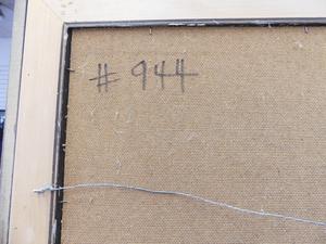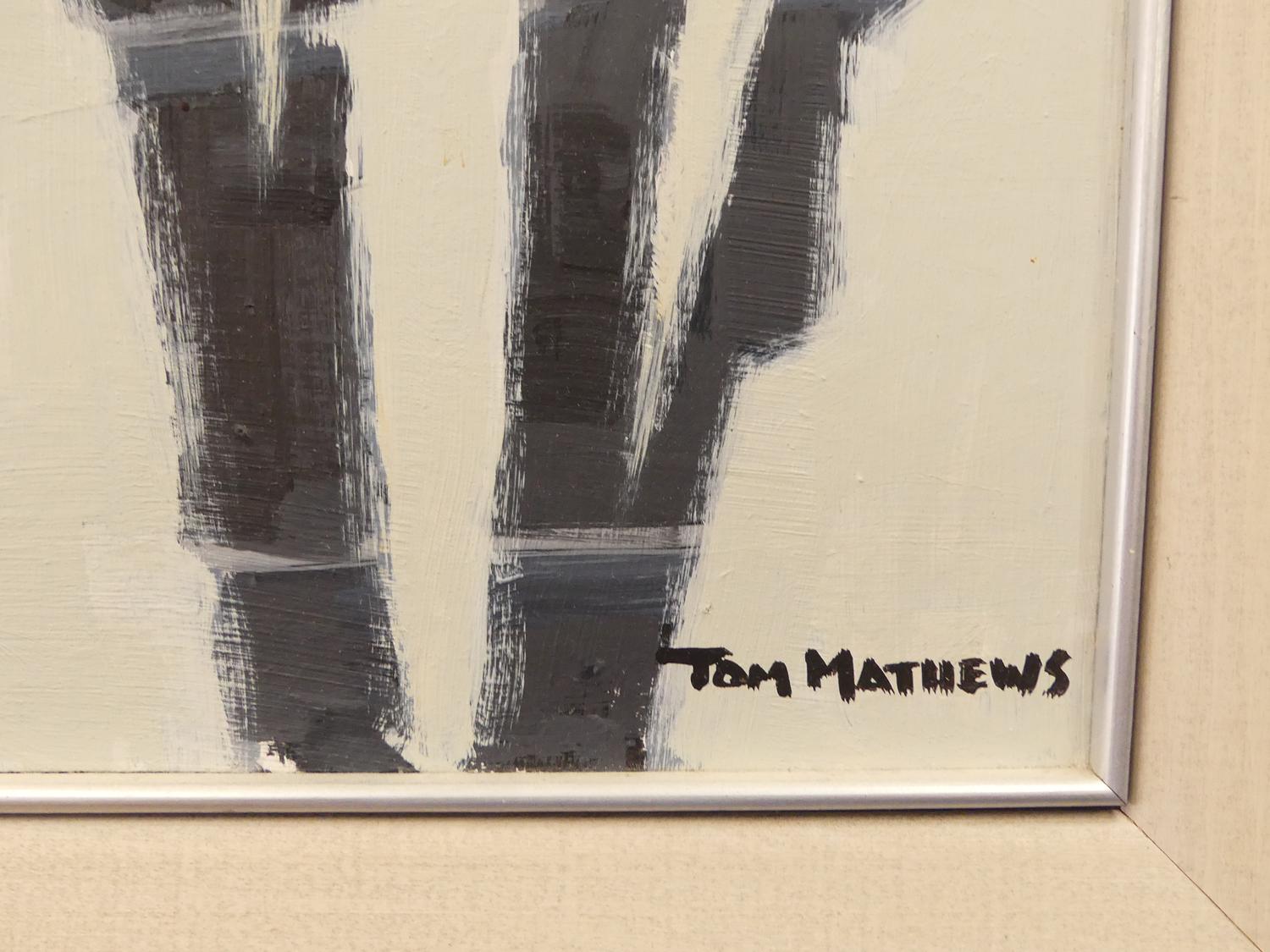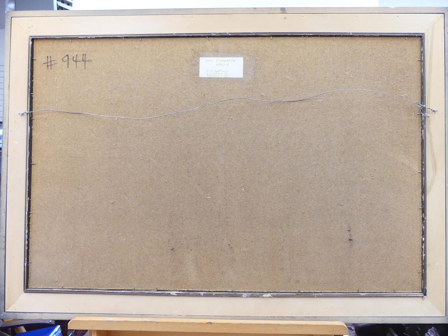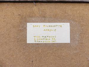 tom mathews (1920-2000), acrylic on masonite, 23" x 25"", "soft silhouette"
