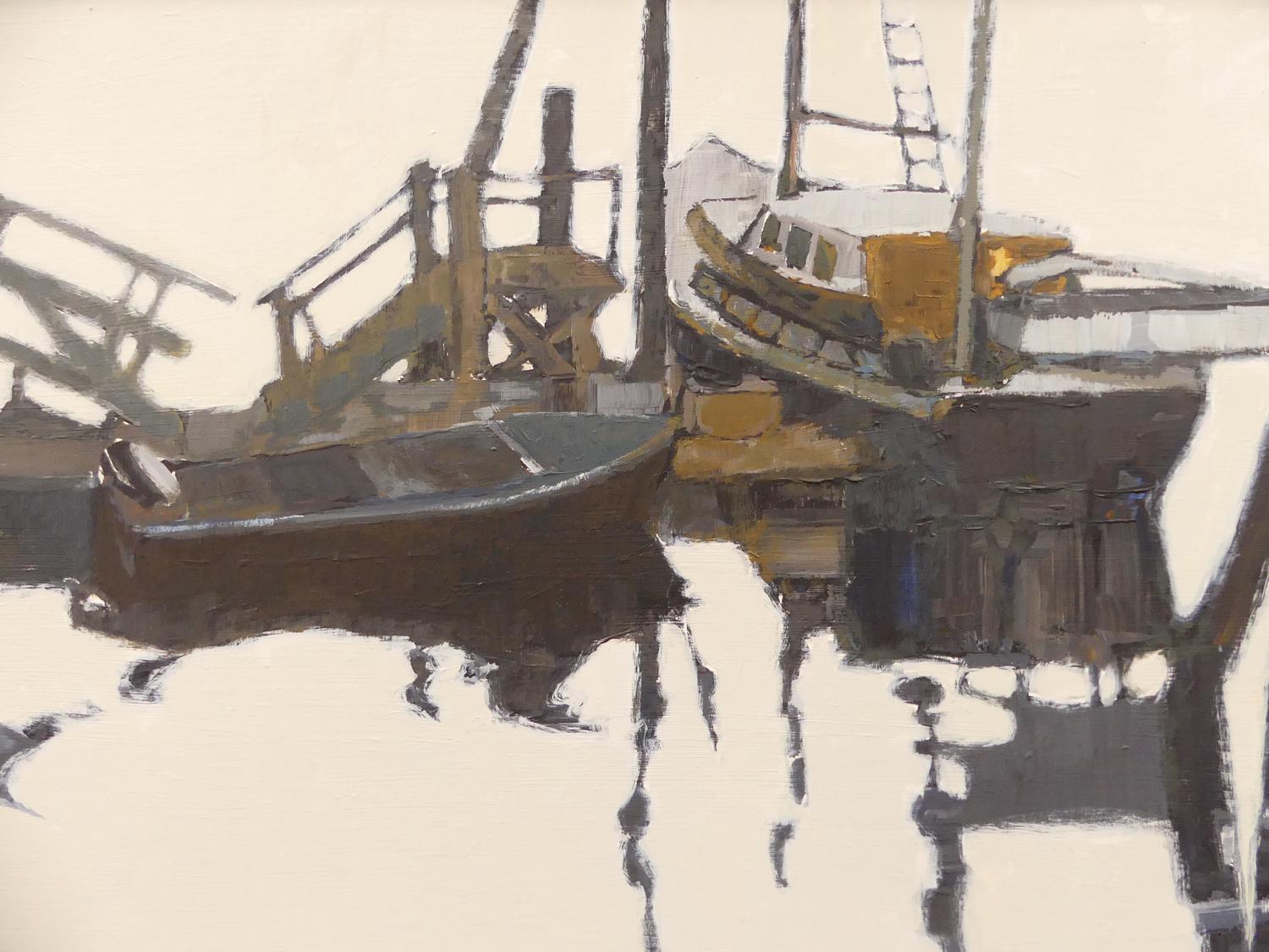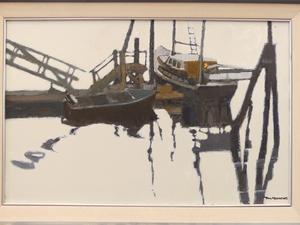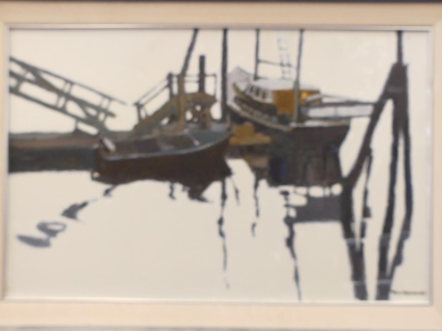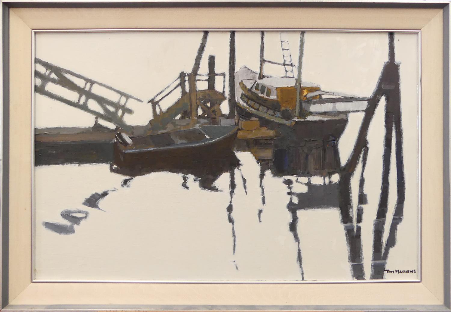tom mathews (1920-2000), acrylic on masonite, 23" x 25"", "soft silhouette"