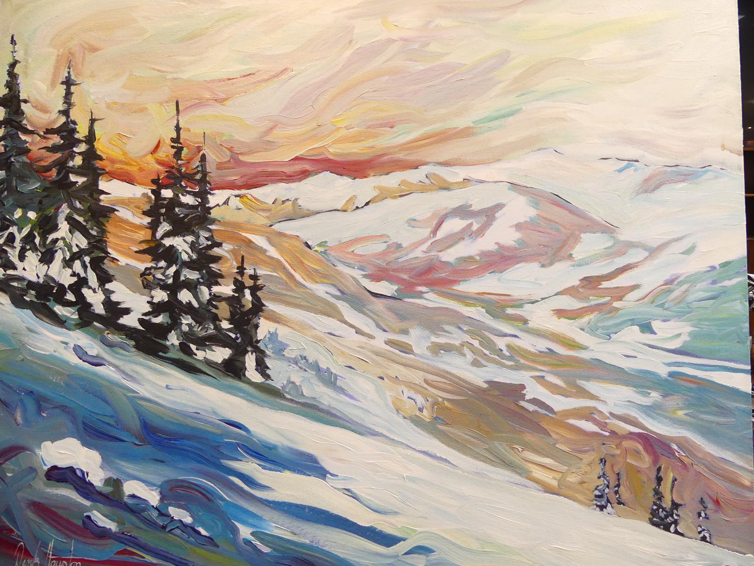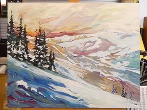deryk houston, oil on canvas, 24" x 30", "winter mountain landscape"