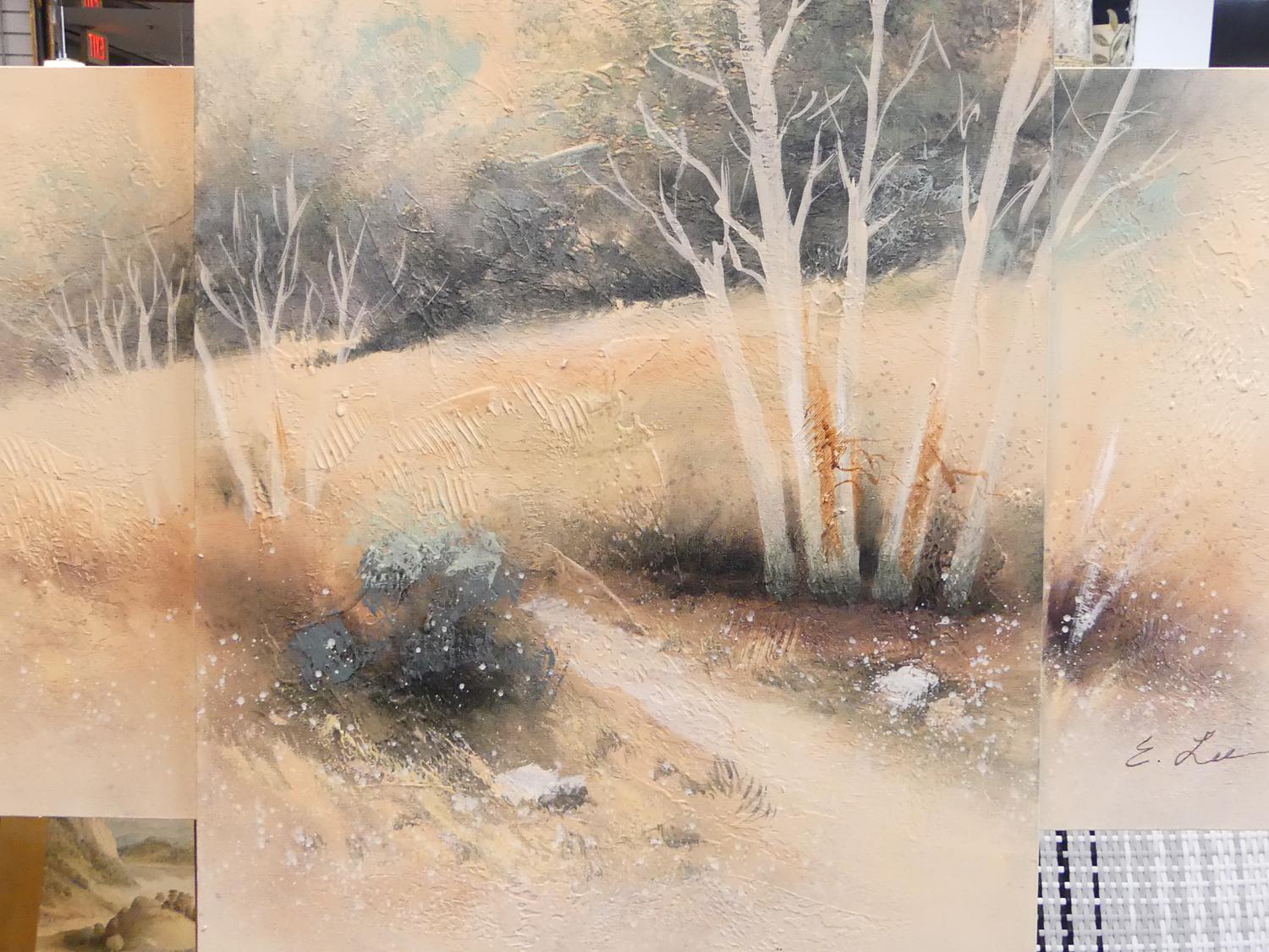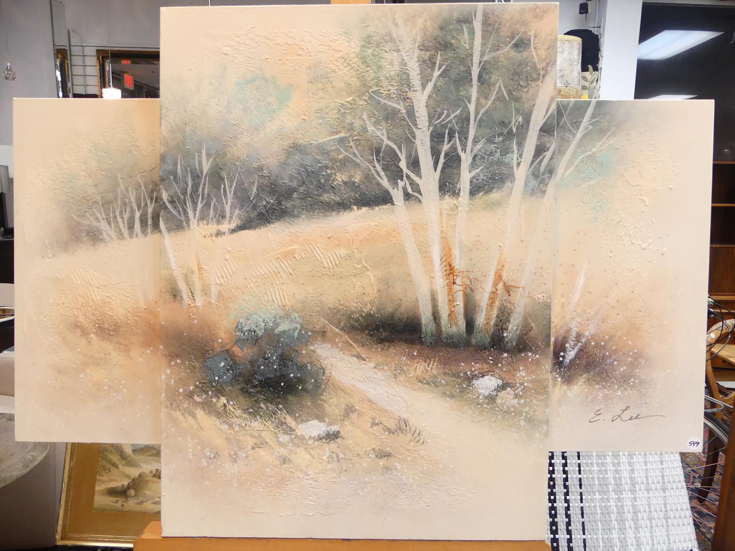e. lee, oil on canvas diptych, 30" x 40", "winter landscape"