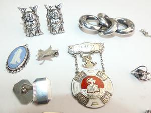 lot of sterling silver jewelery including victorian knot brooch, 41.52 grams