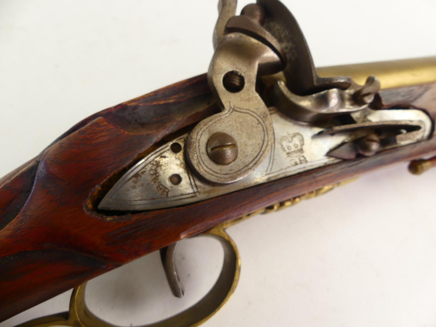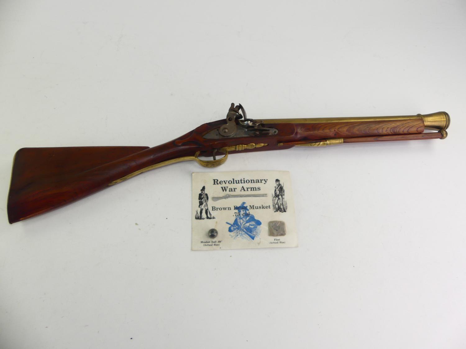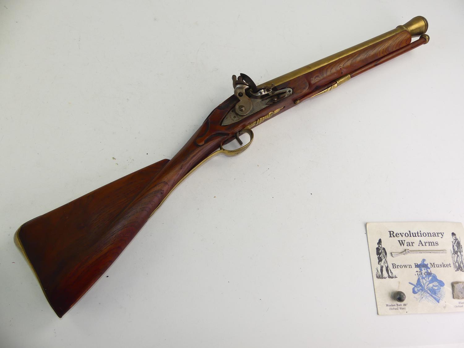 gr tower brown bess blunderbuss, 30" together with commemorative revolutionary war ball and flint