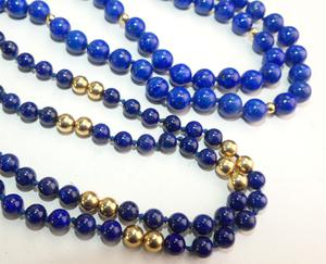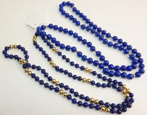 two lapis gold bead necklaces, length 28"