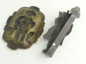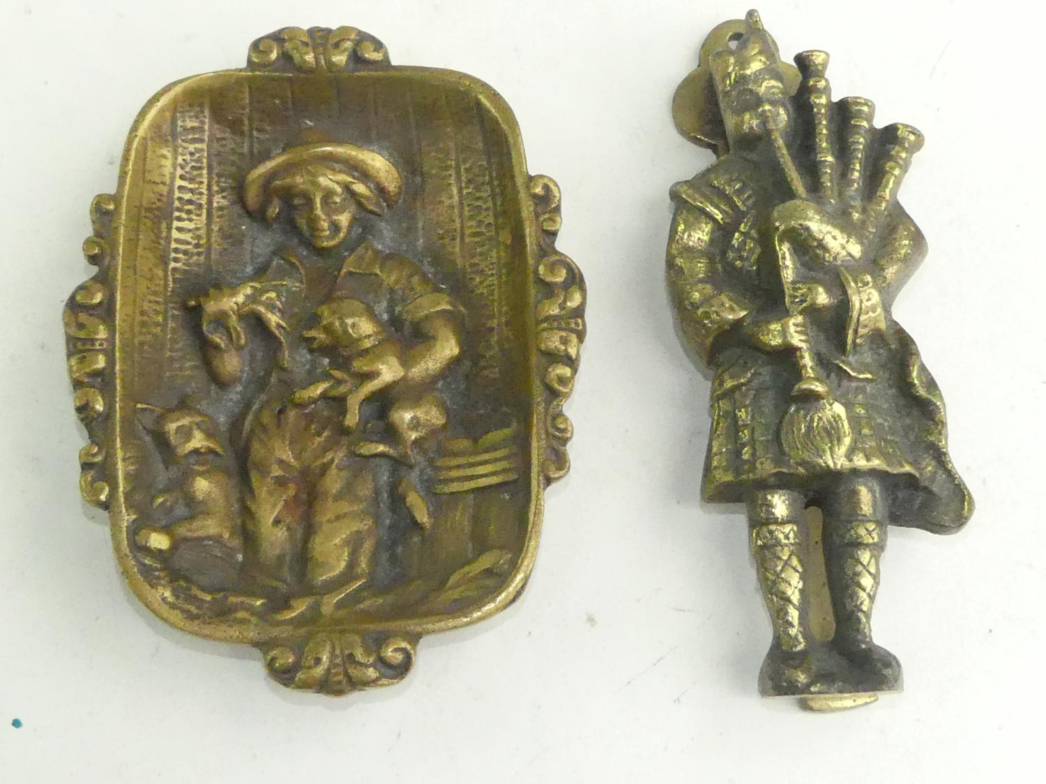 brass figural ashtray and a brass bag piper door knocker