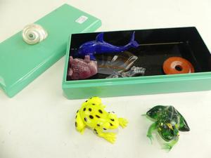 lot of glass animals in dresser box
