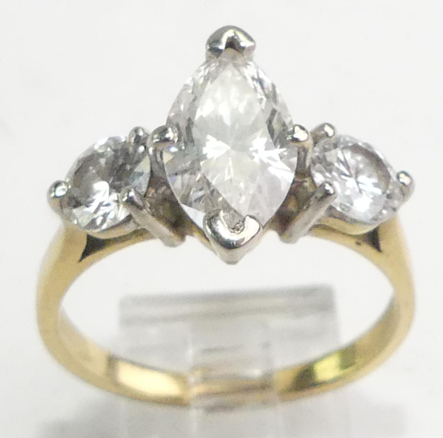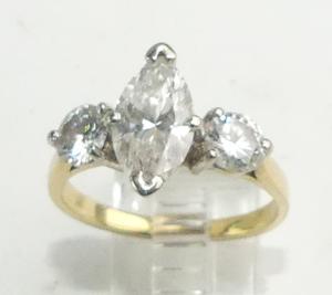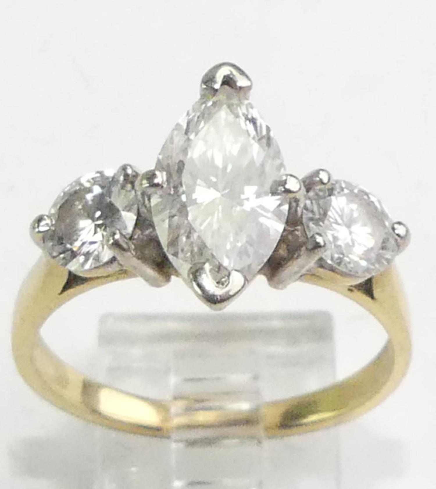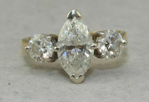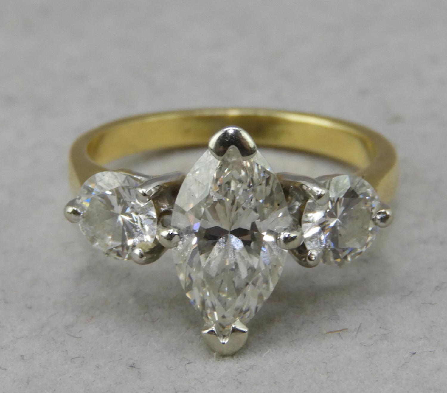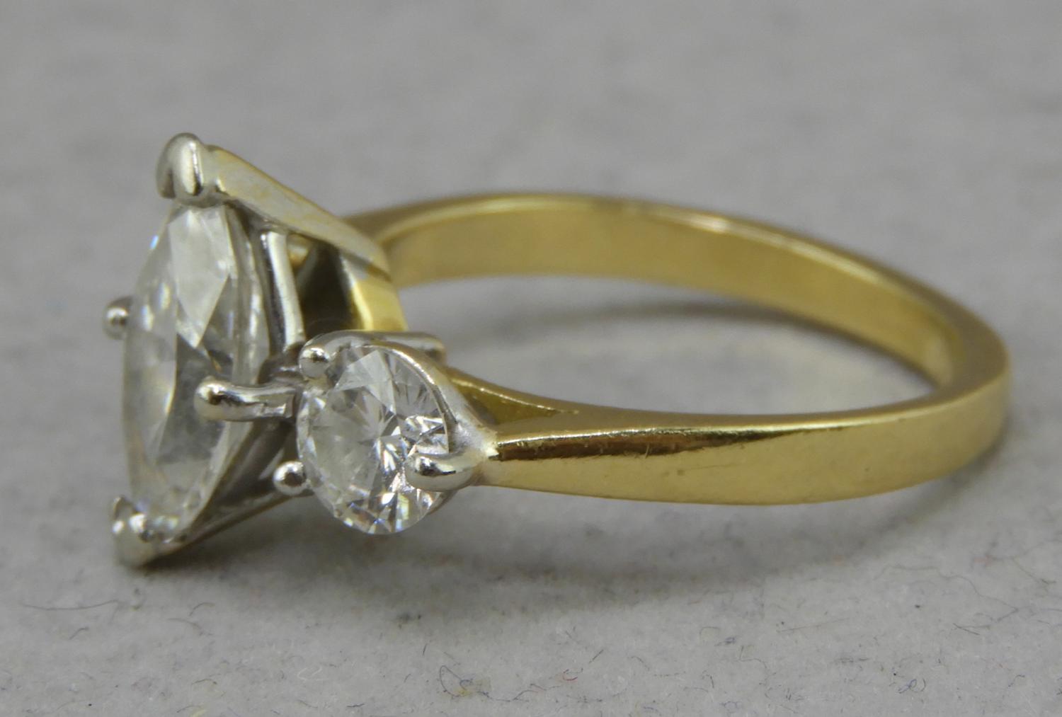 18k yellow white gold diamond ring, 1.83cts, .92cts side stones, size 8, 4.6grams