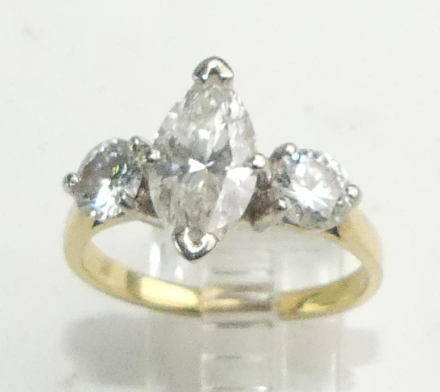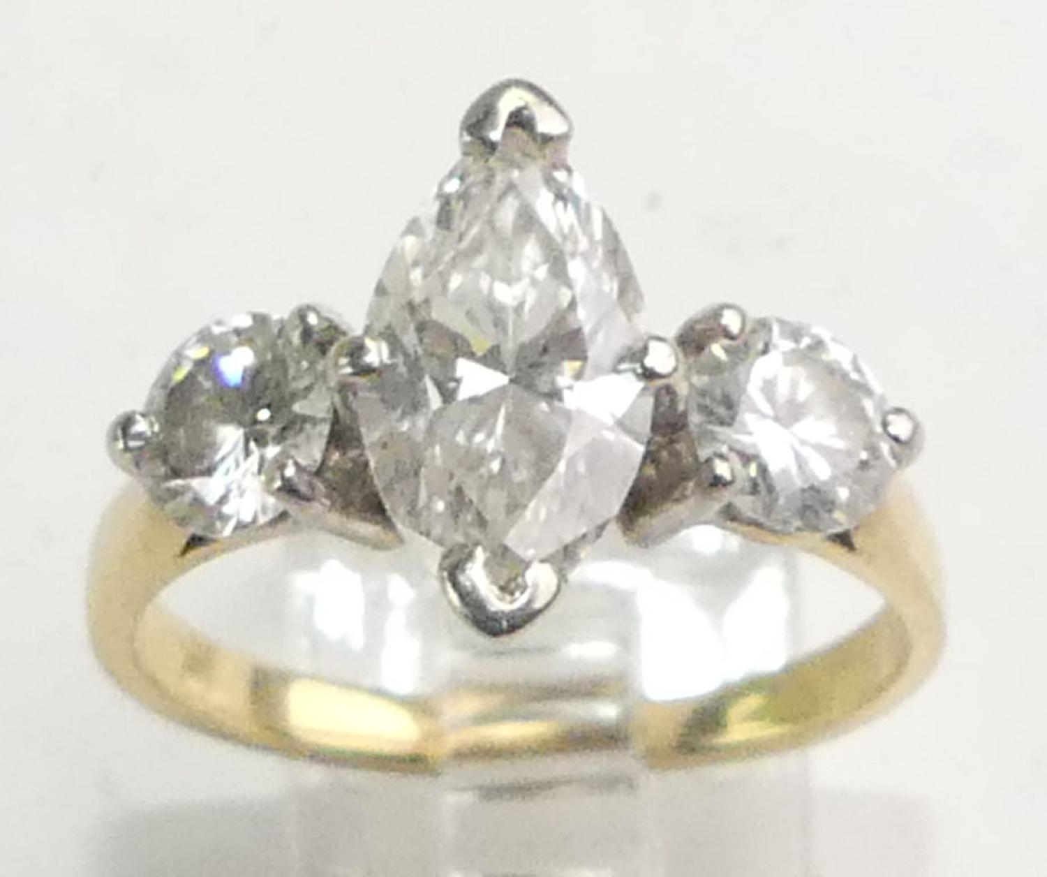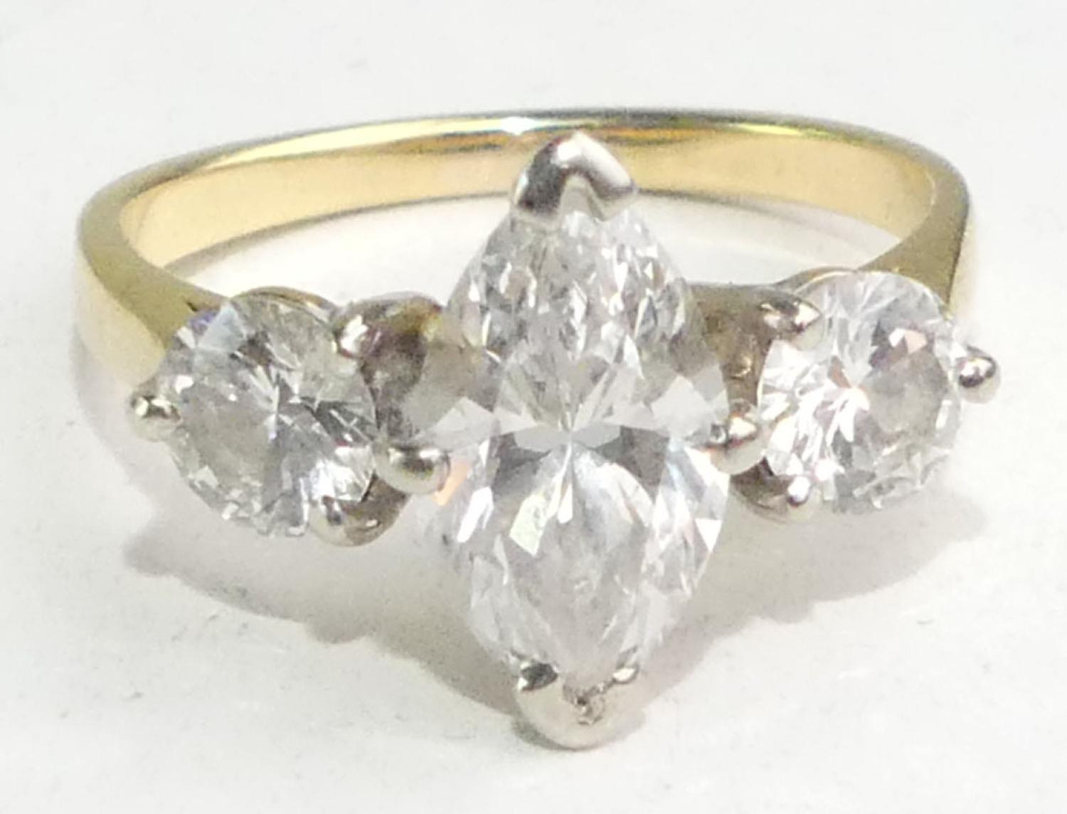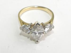 18k yellow white gold diamond ring, 1.83cts, .92cts side stones, size 8, 4.6grams