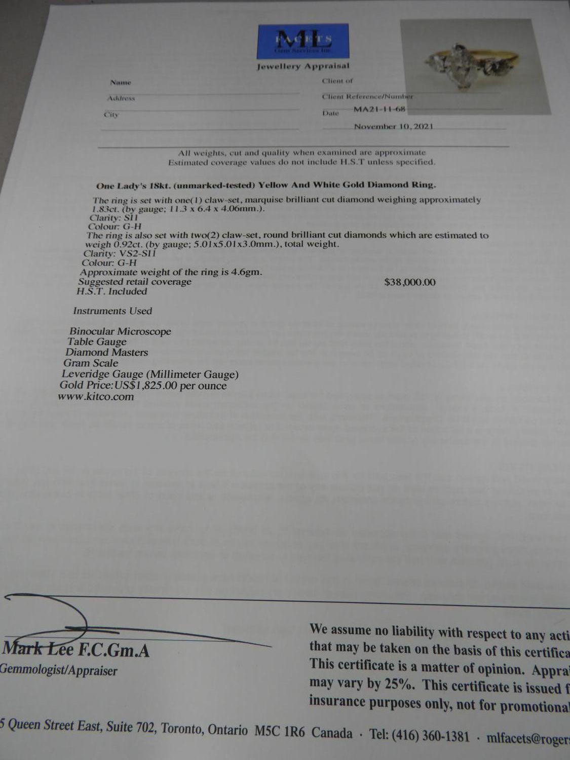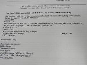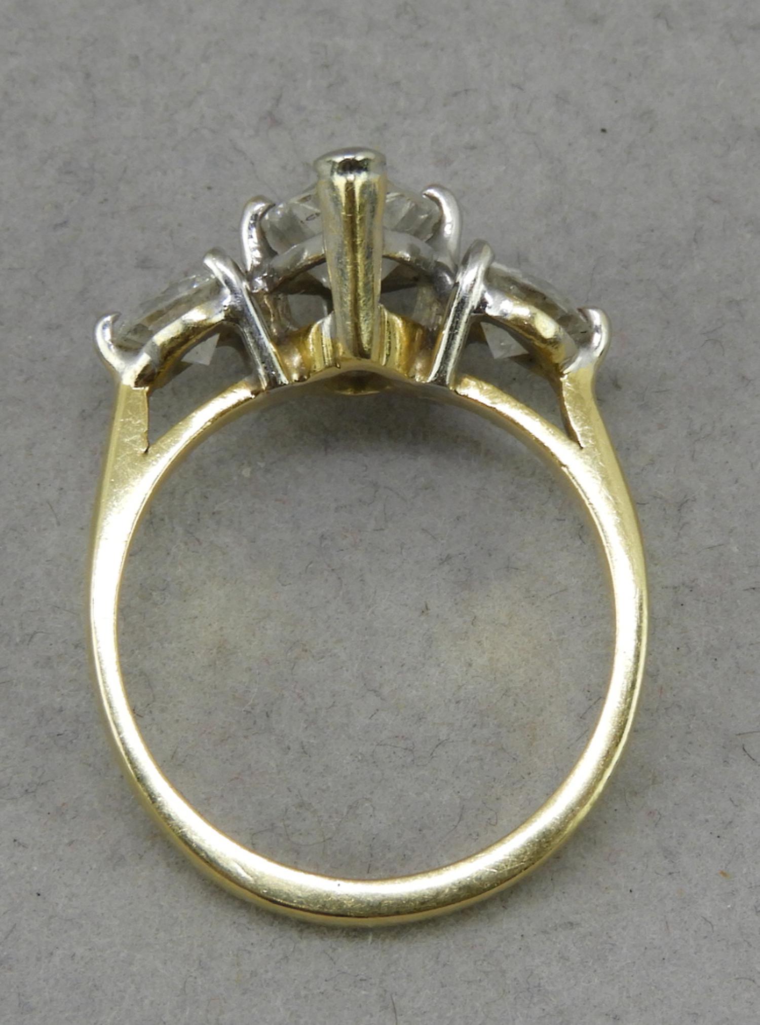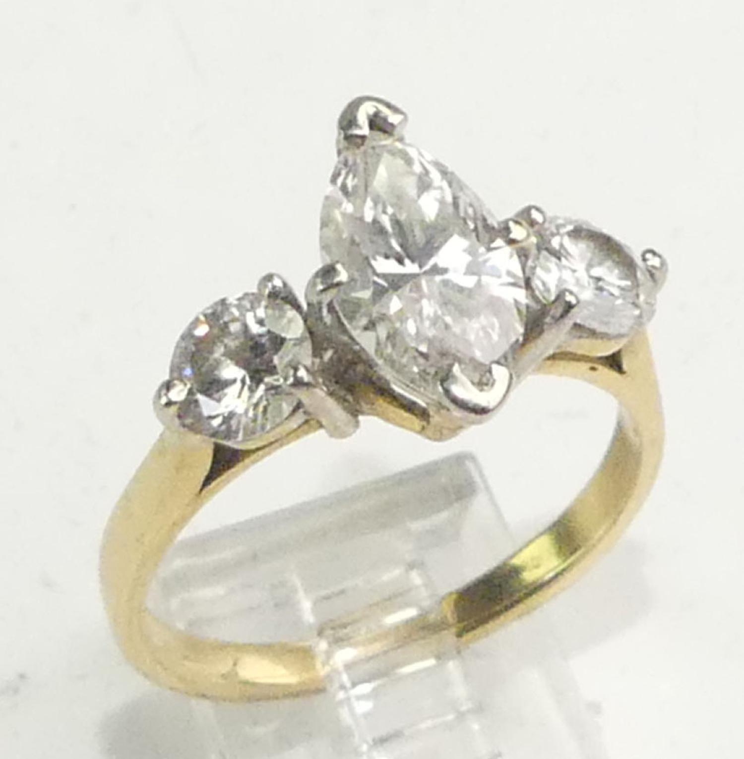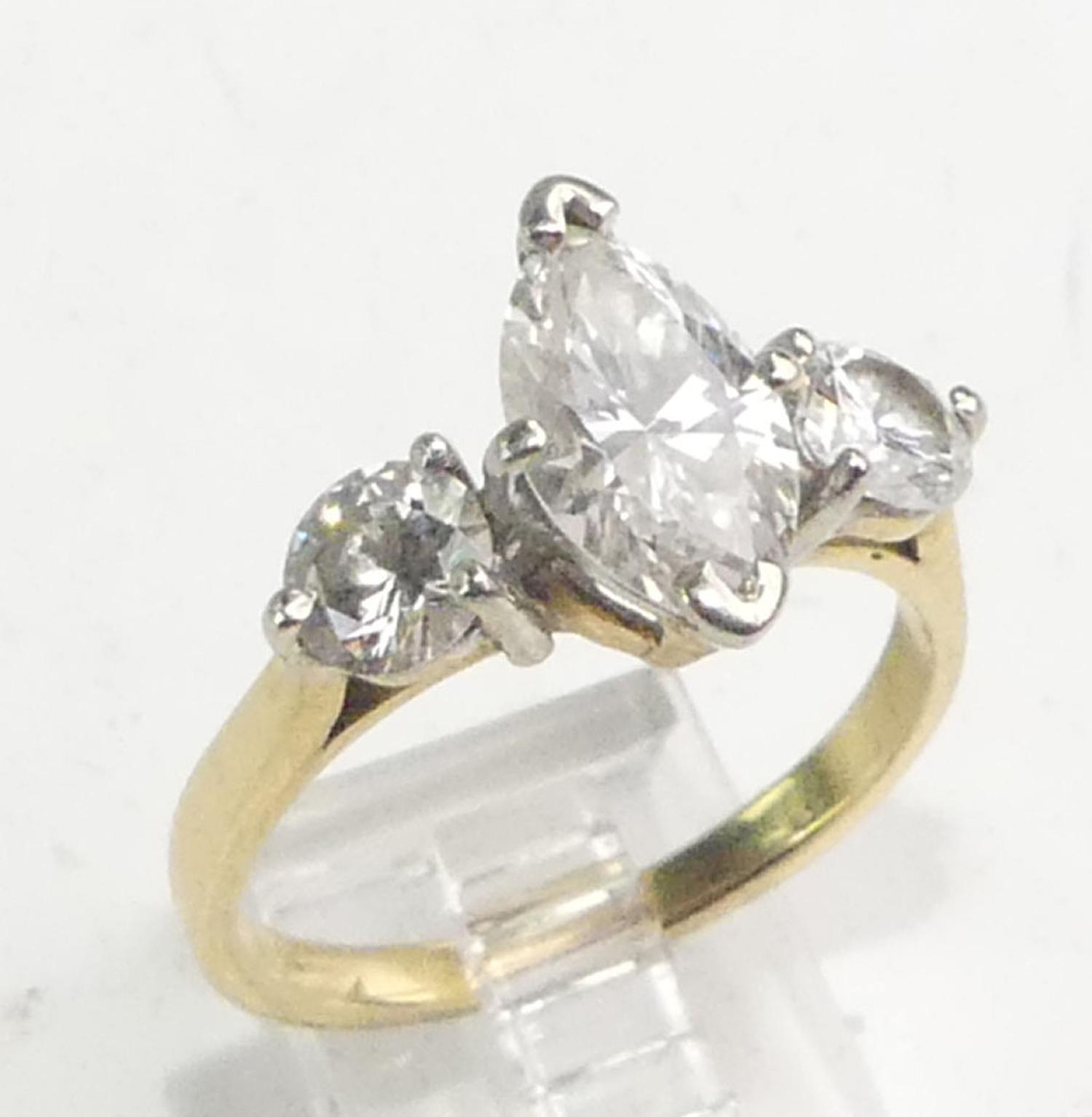 18k yellow white gold diamond ring, 1.83cts, .92cts side stones, size 8, 4.6grams