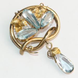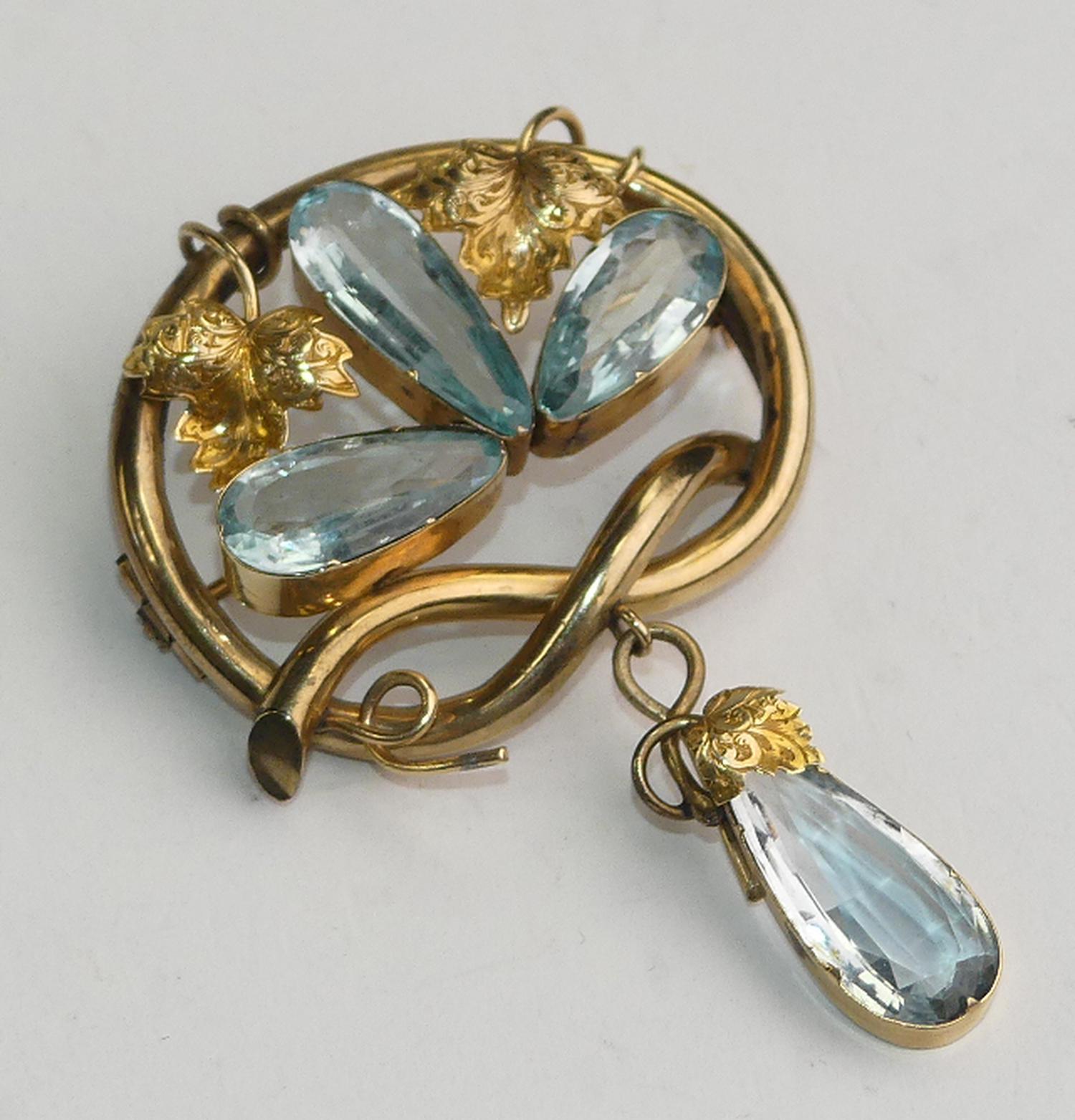 victorian 15k gold aquamarine brooch, circa 1900s
