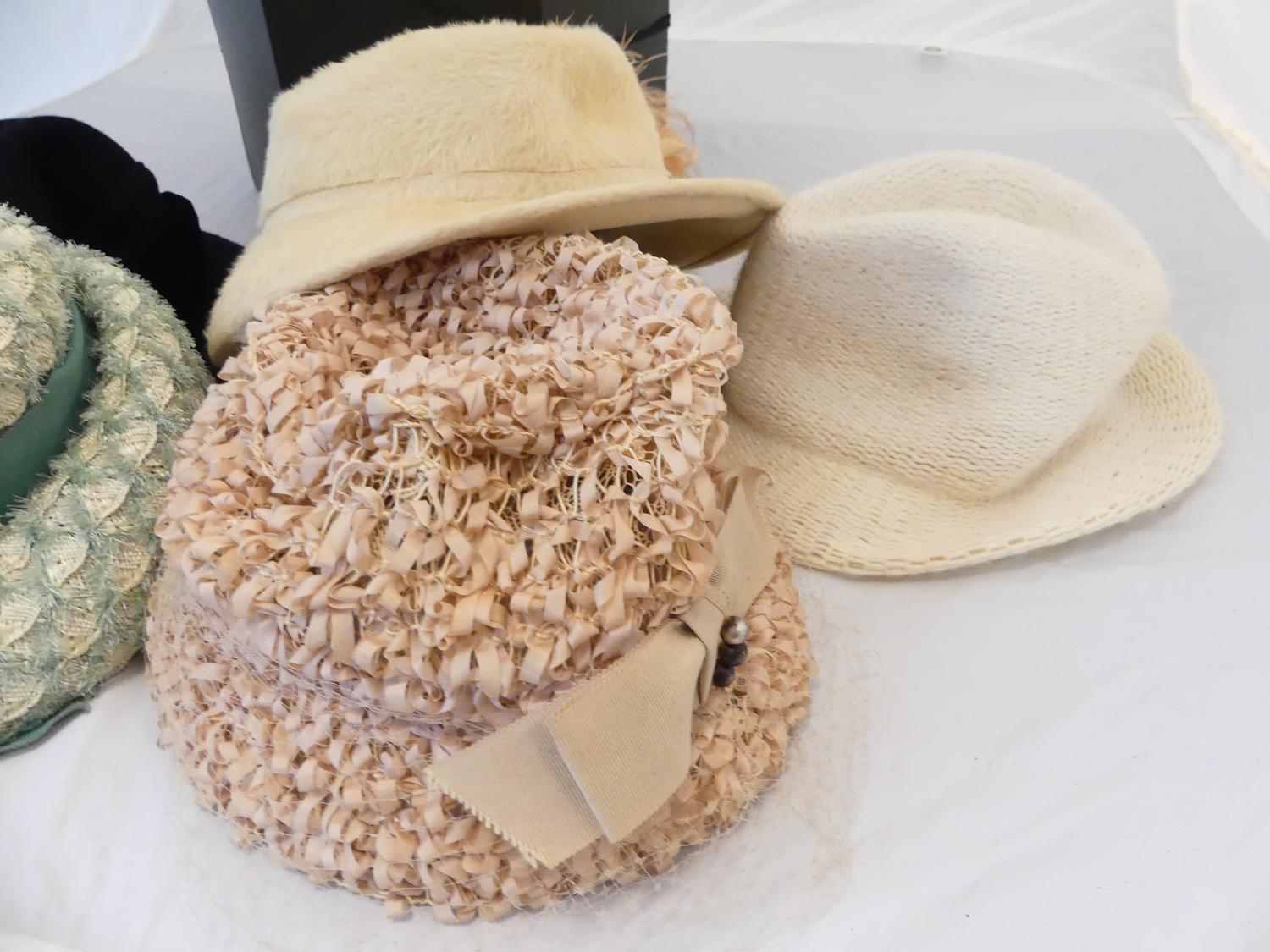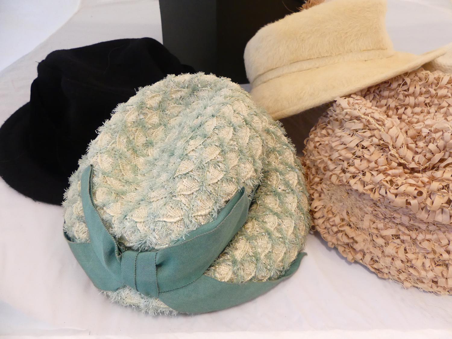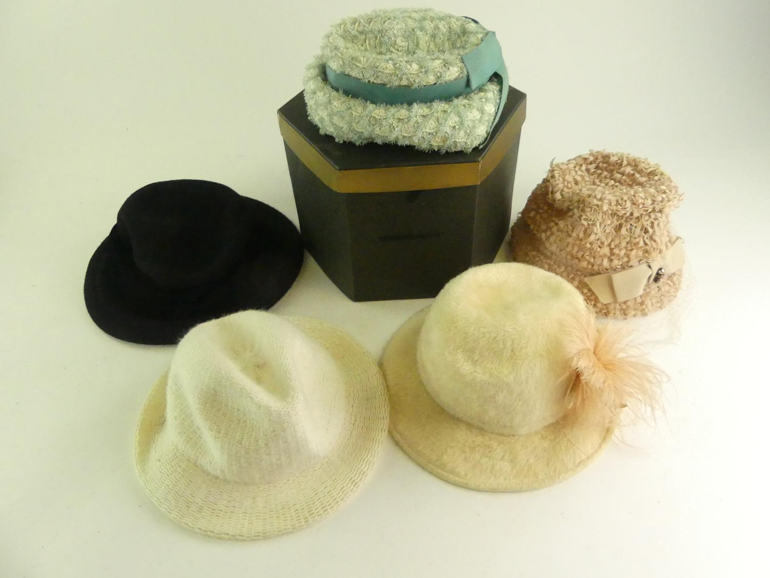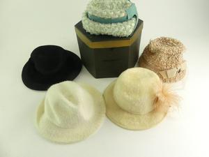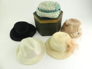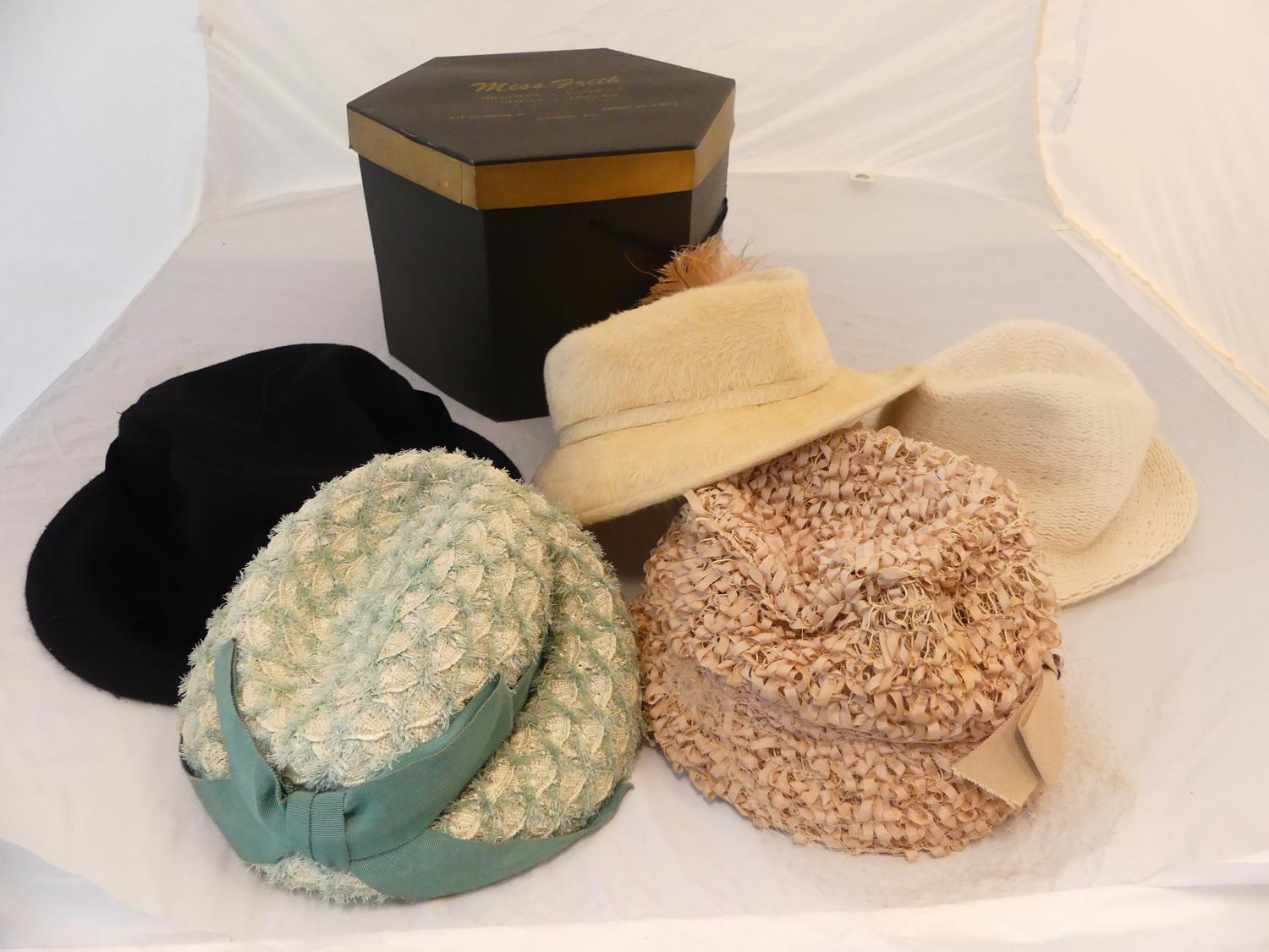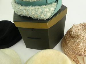 lot of vintage hats with hat box