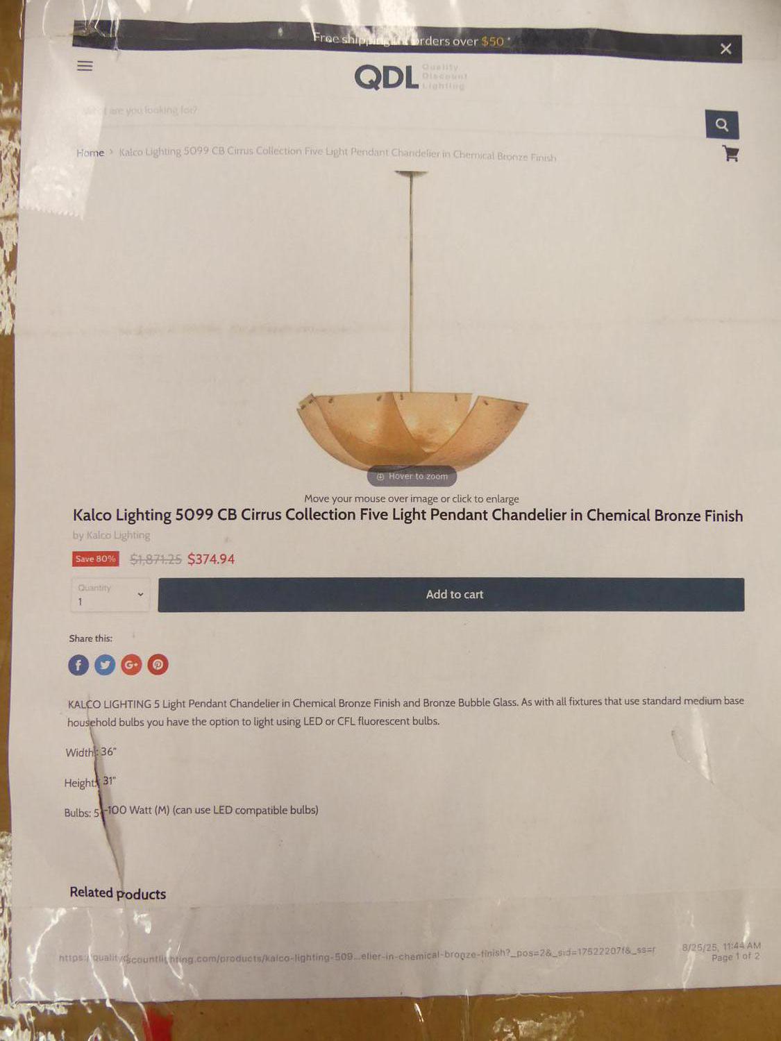 kalco lighting 5099 cb cirrus collection five light pendant chandelier in chemical bronze finish