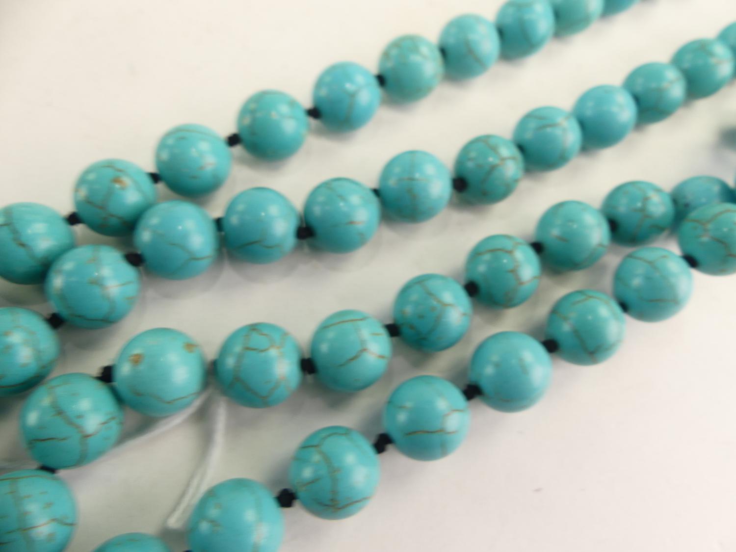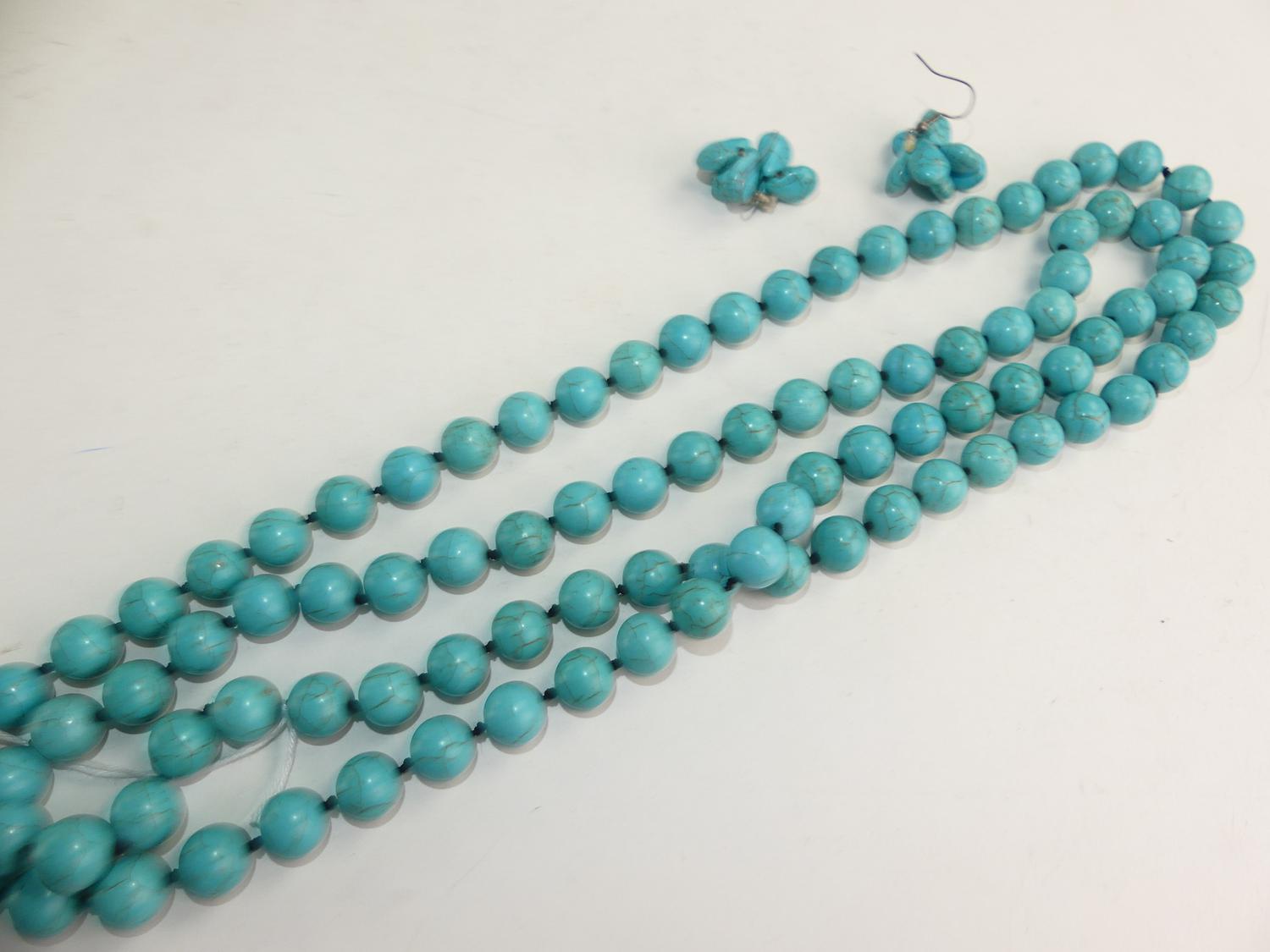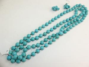 asian turquoise necklace and earrings suite, 50" in length