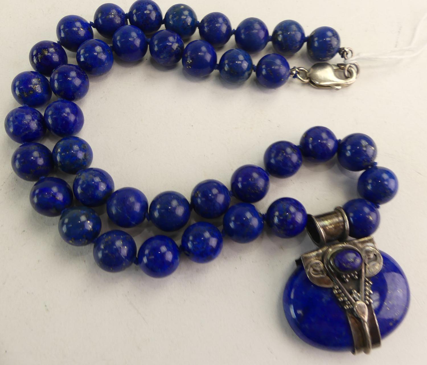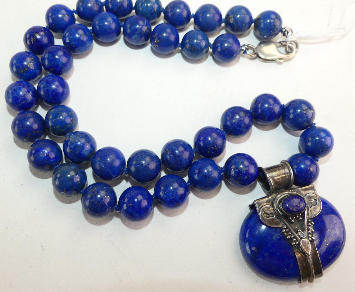lapis pendant necklace, sterling silver clasp, length 20"