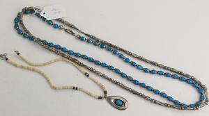 vintage navajo silver tuqoise necklace and two mexican silver necklaces