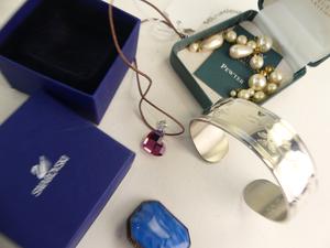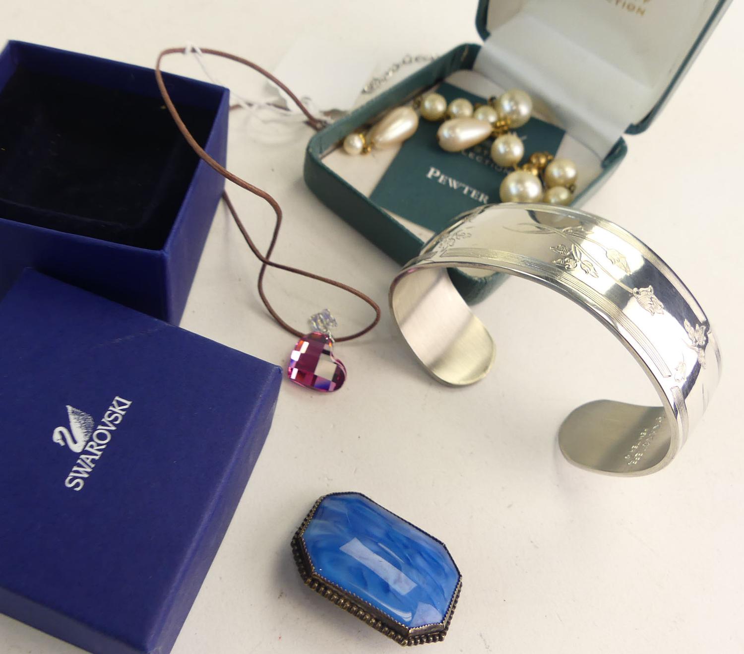 swarovski necklace, faux pearl earrings pewter cuff bracelet