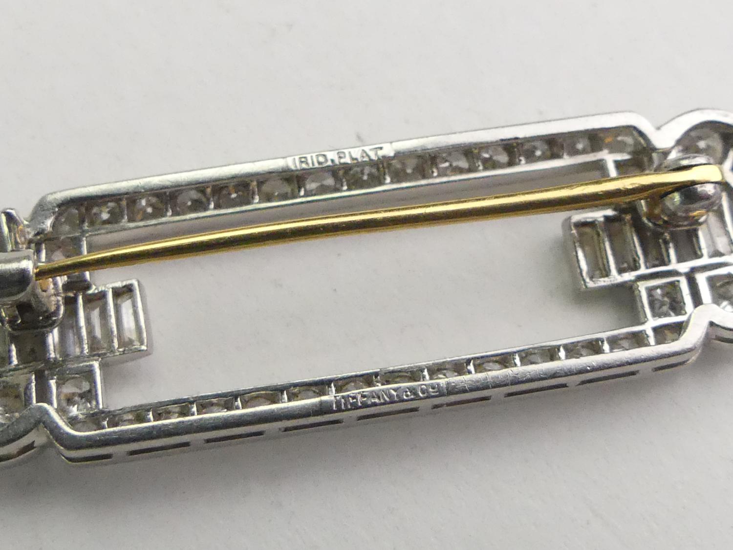 art deco tiffany and co. diamond platinum brooch with box
