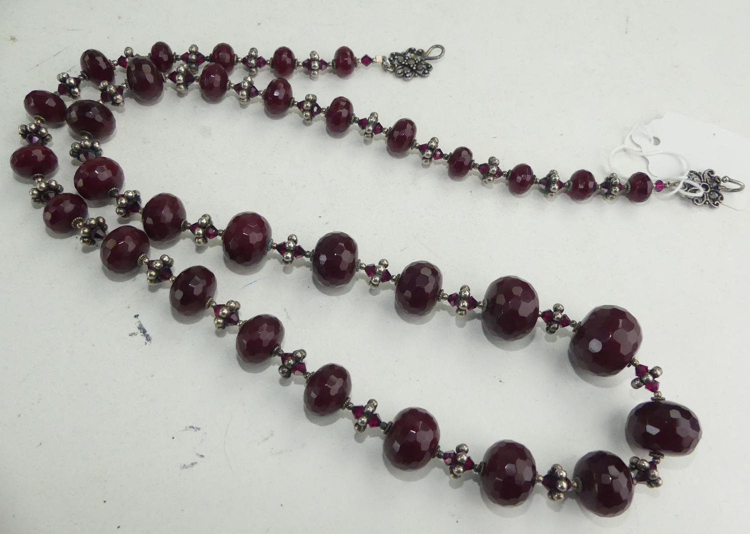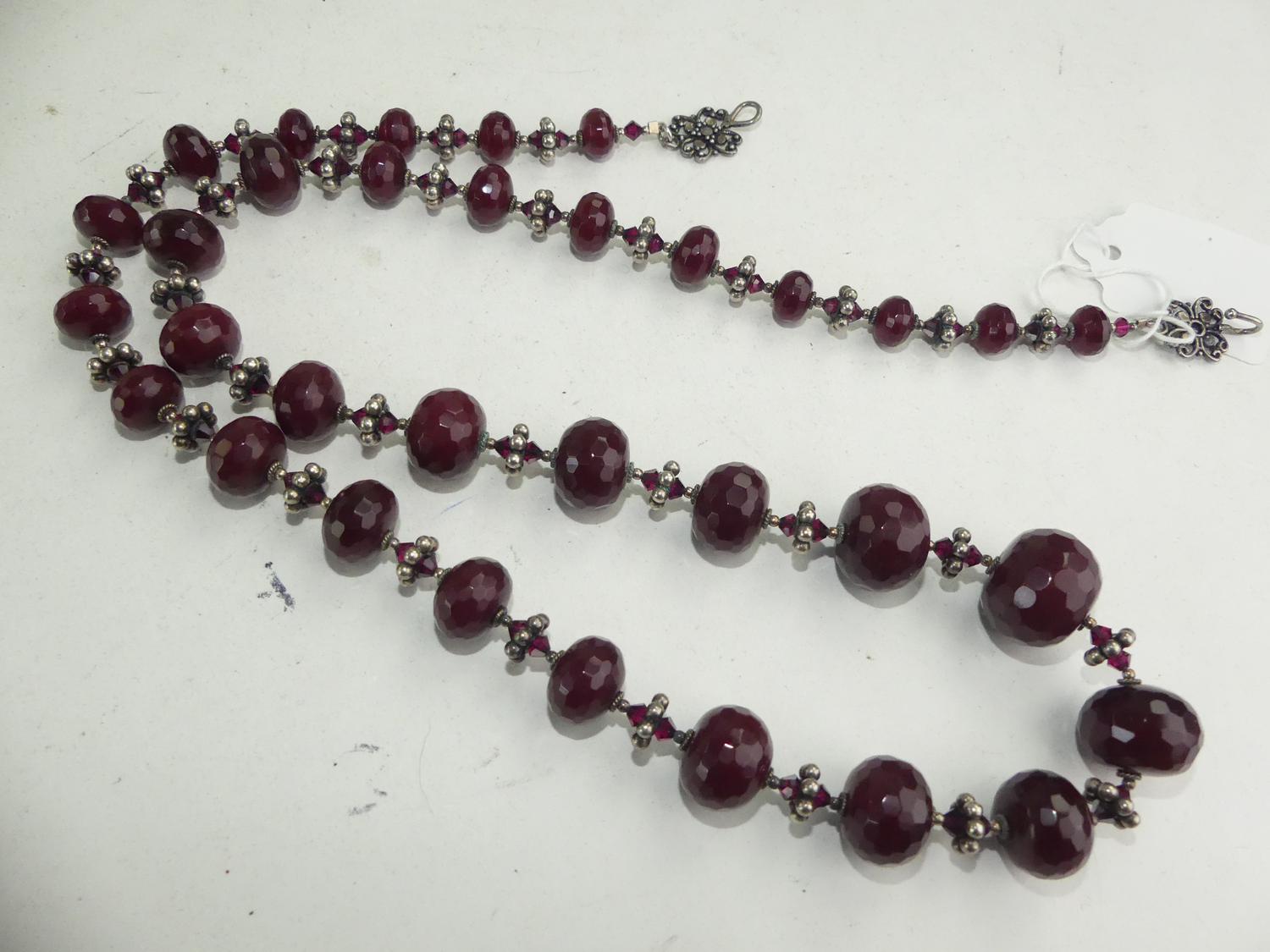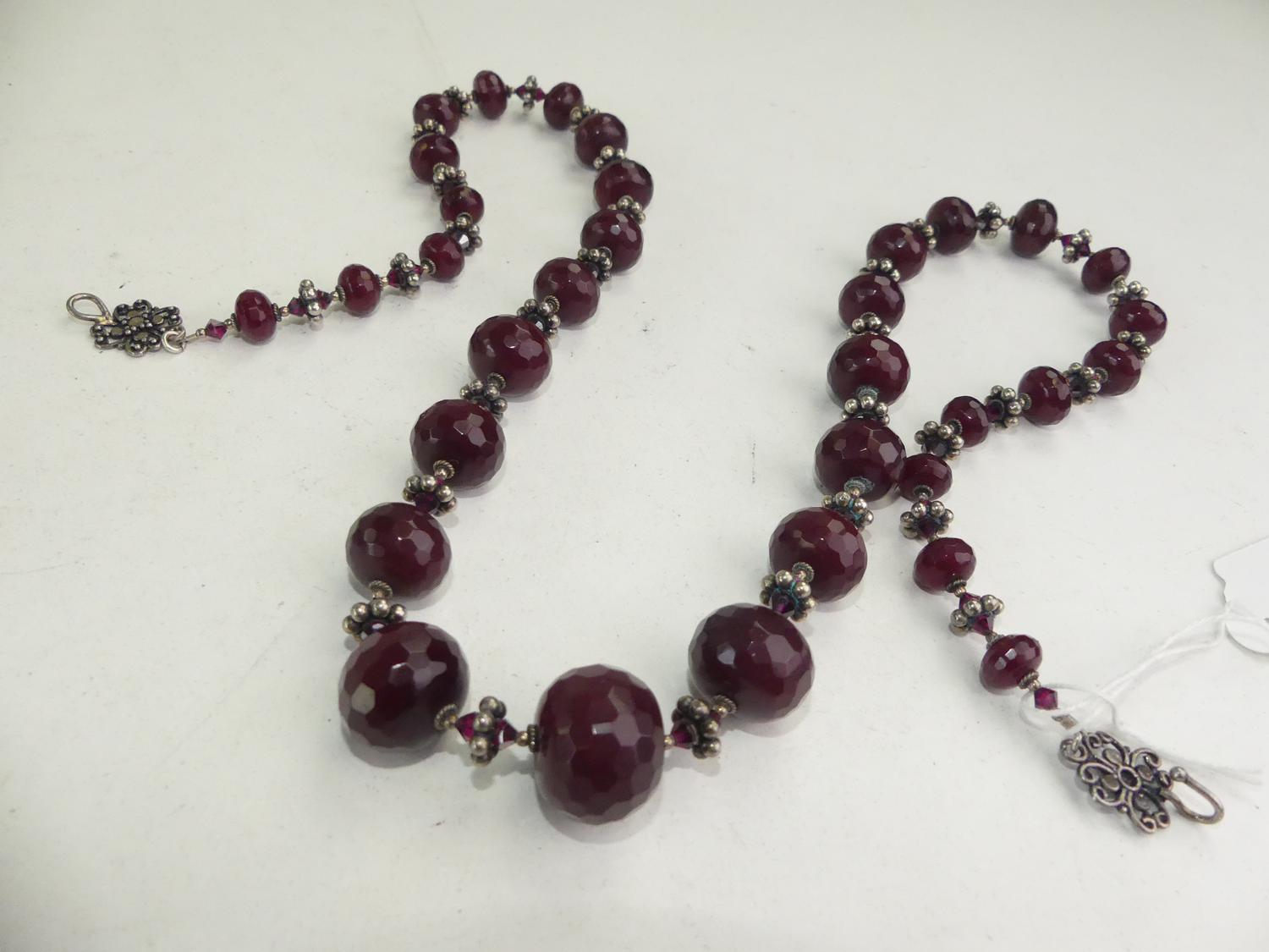 sterling silver ruby (reconstituted) bead necklace, length 30"