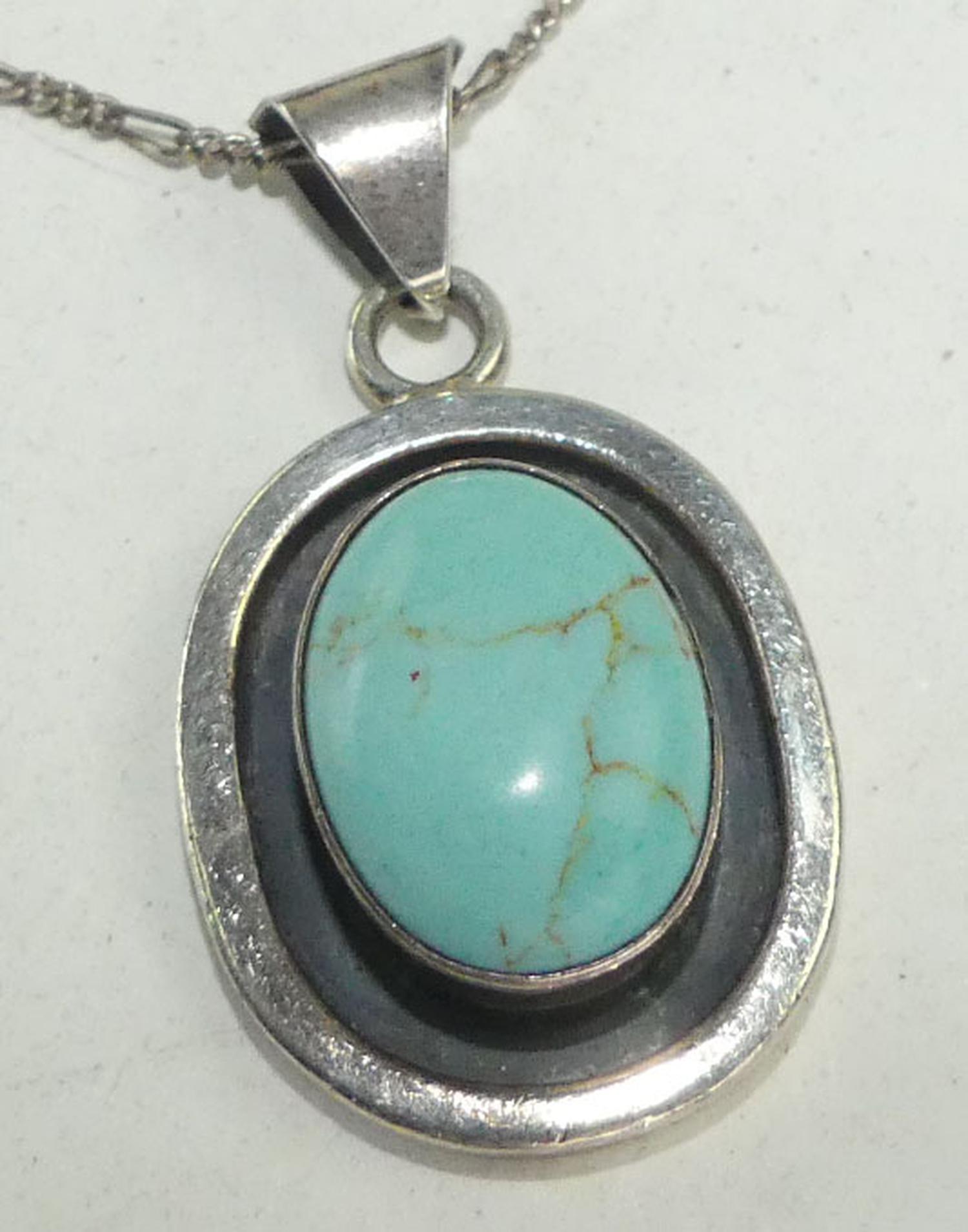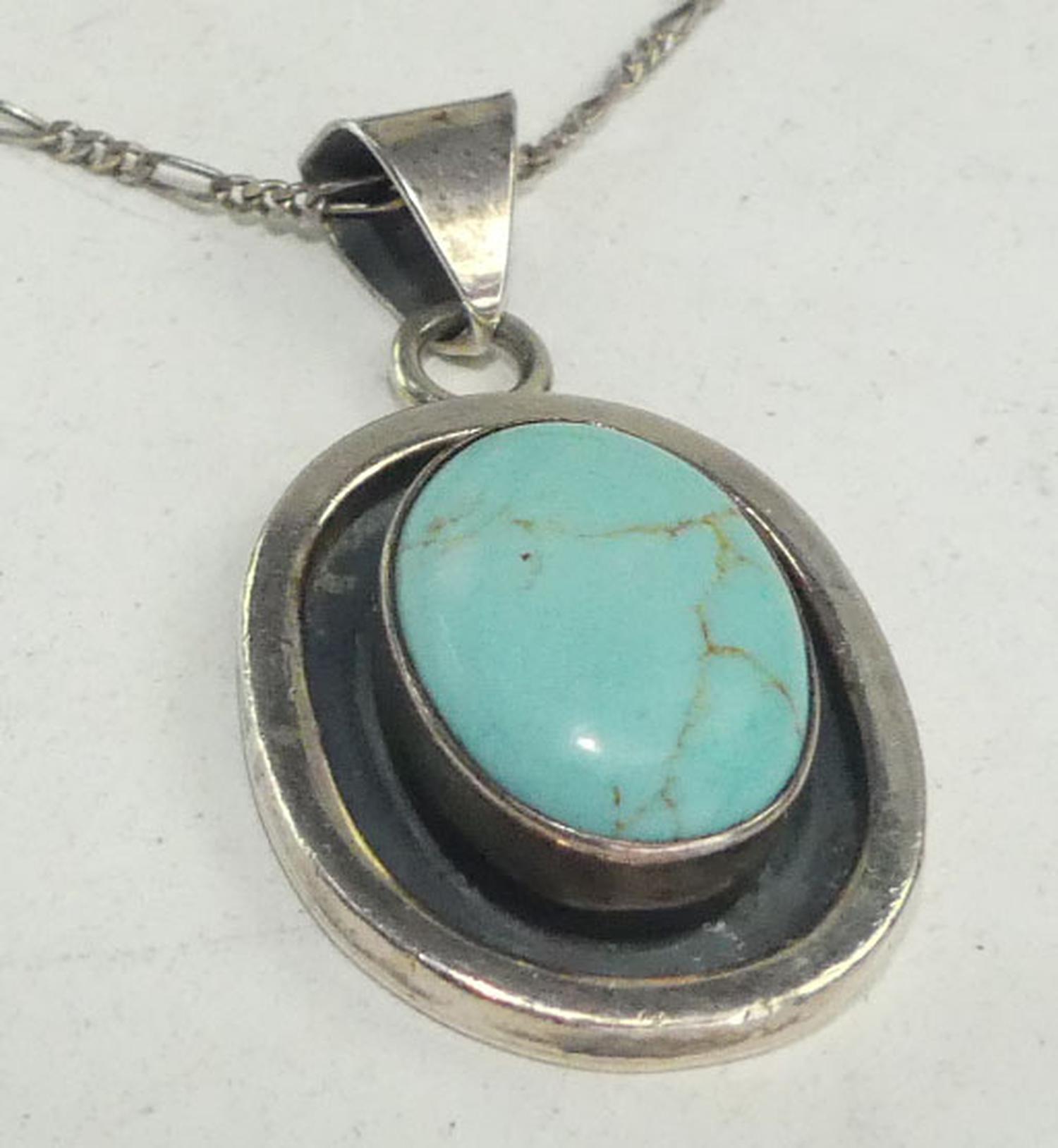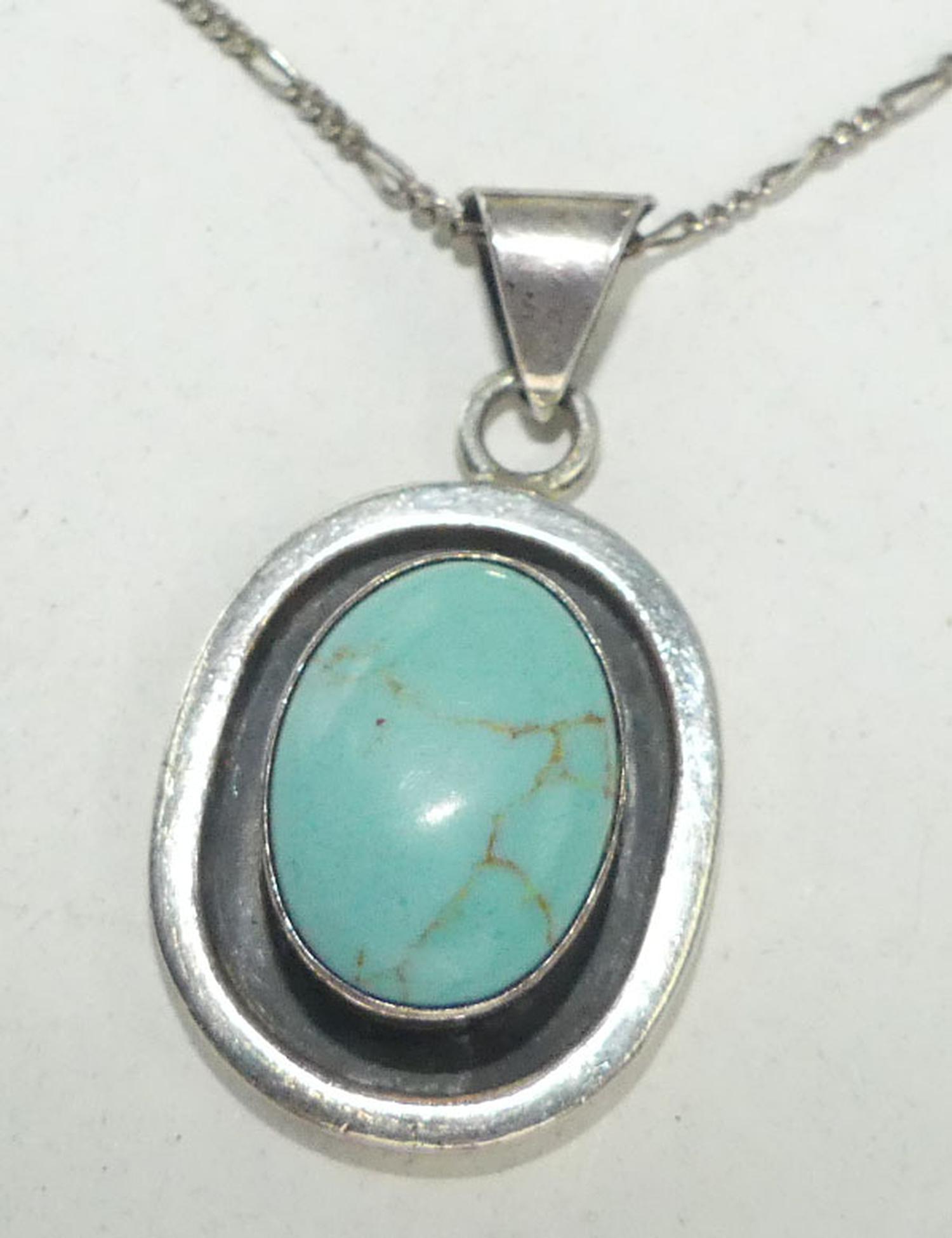 vintage sterling silver turquoise pendant necklace, length 18", weighing approx 16 grams