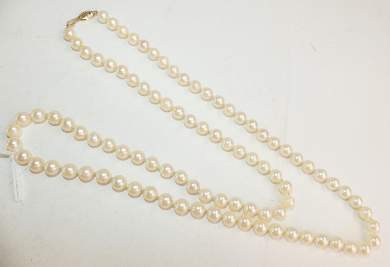 cultured pearl necklace, 7.0mm-7.3mm, 14k gold clasp, length 30"