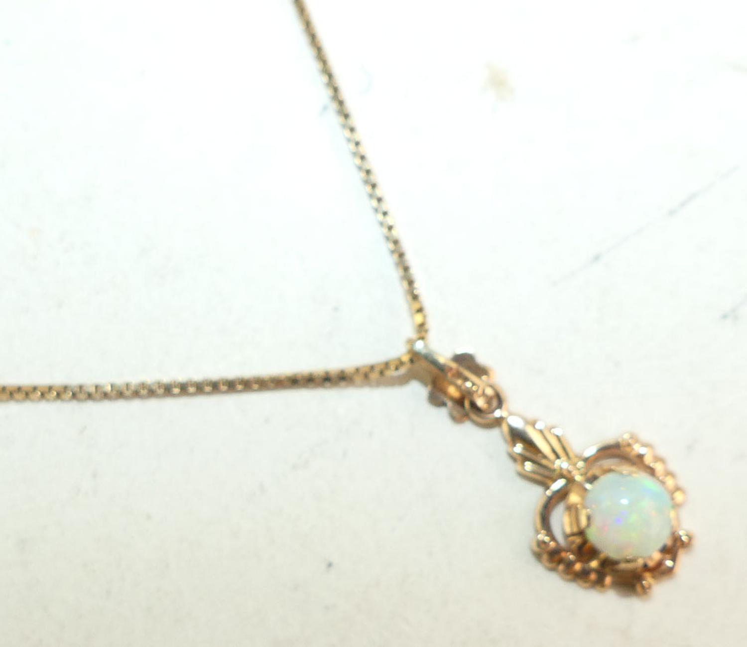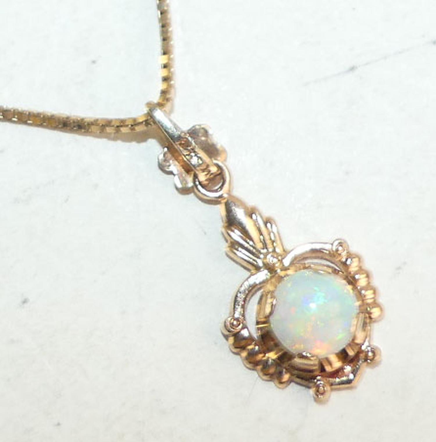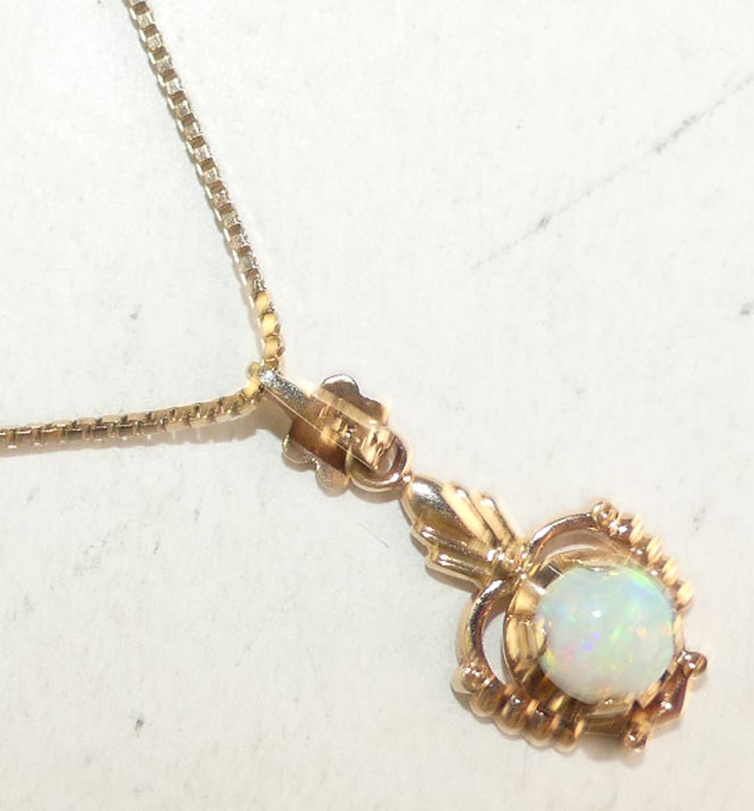 10 yellow gold opal pendant necklace,