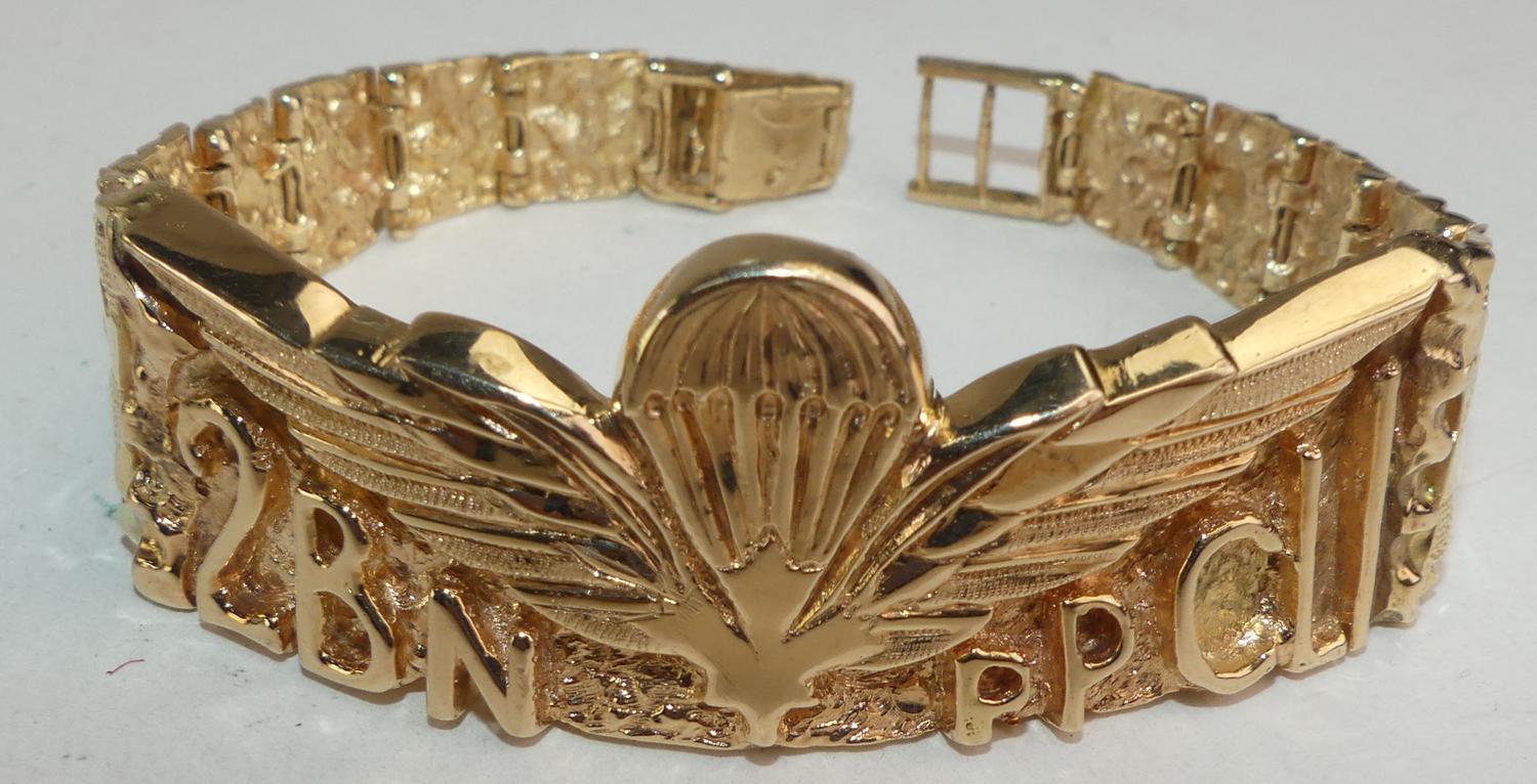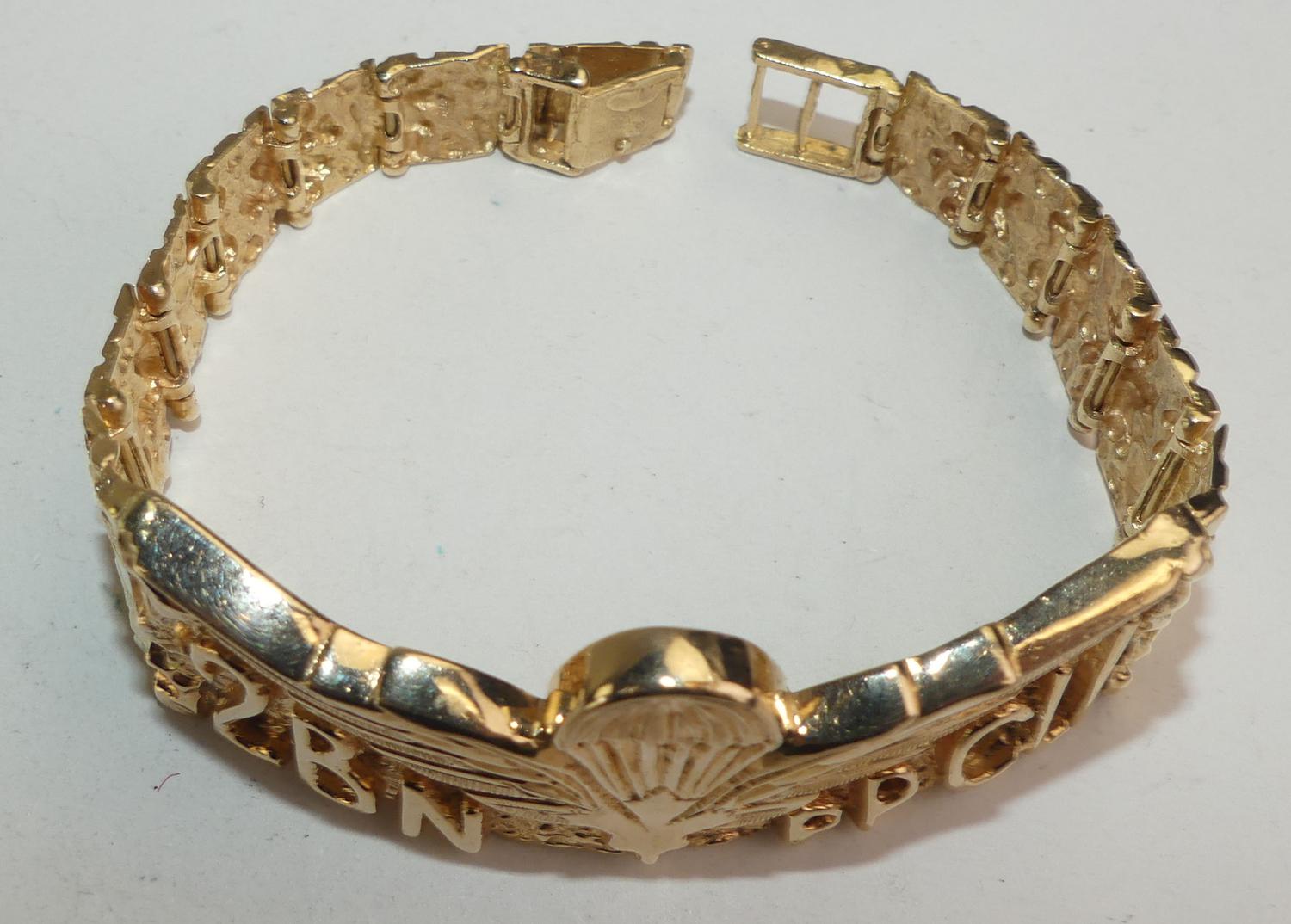 14k rose gold "2nd battalion princess patricia's canadian light infantry" custom bracelet, length 8 1/2", 54 grams